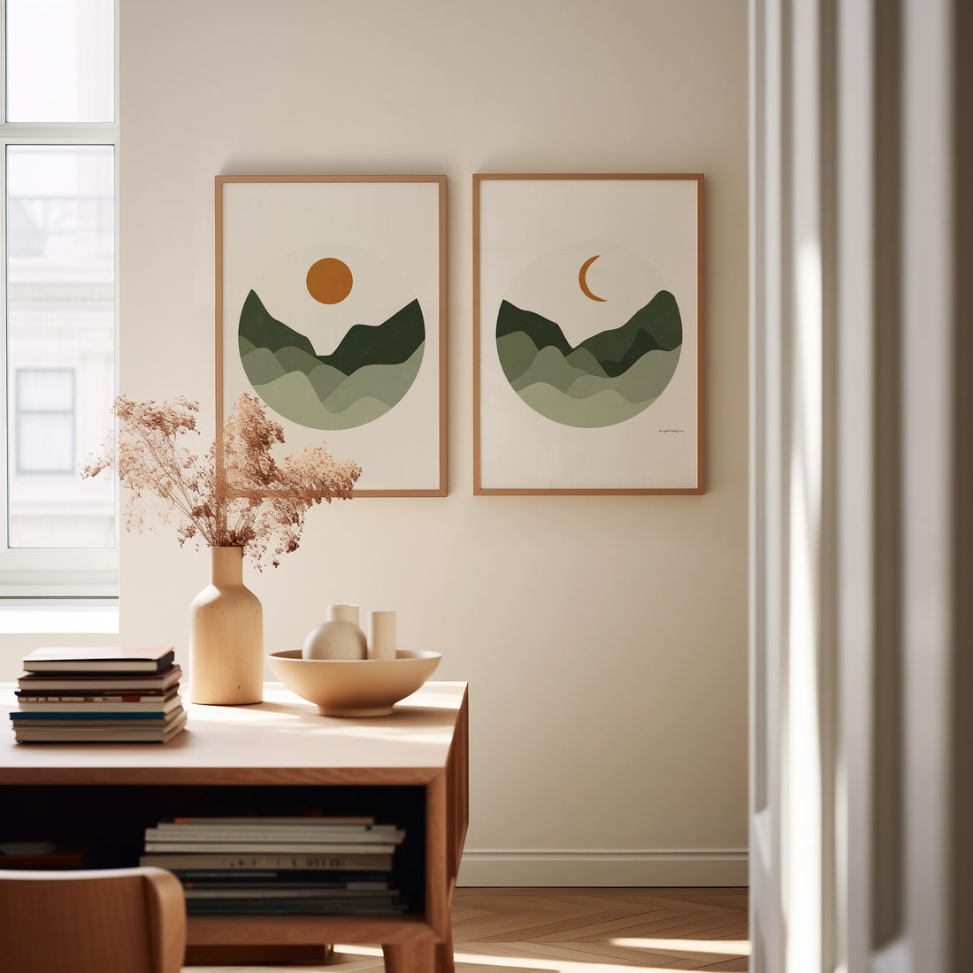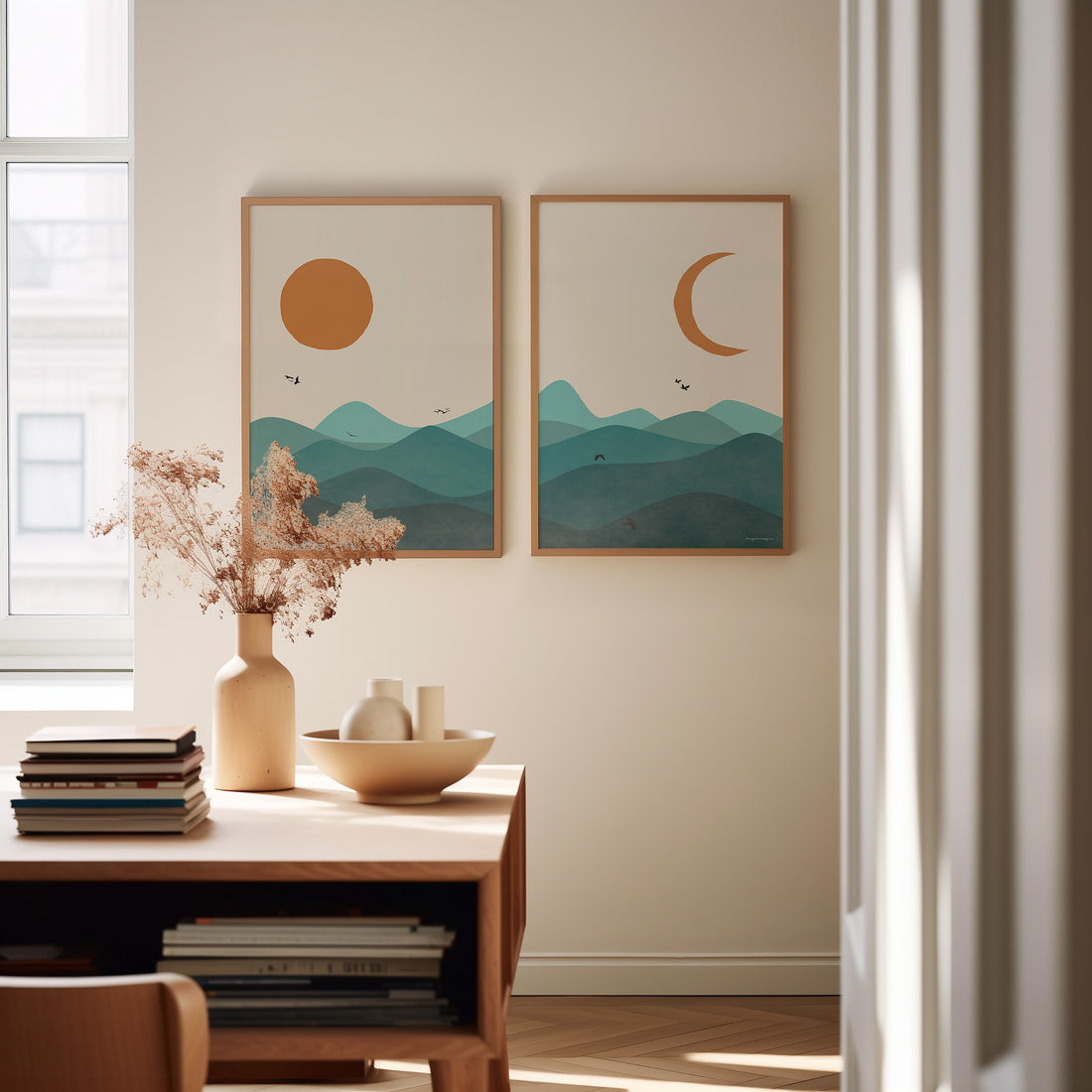 Tweeluik Poster Set: Bergen, Zon, Maan en VogelsTweeluik Poster Set: Bergen, Zon, Maan en Vogels- Reguliere prijs