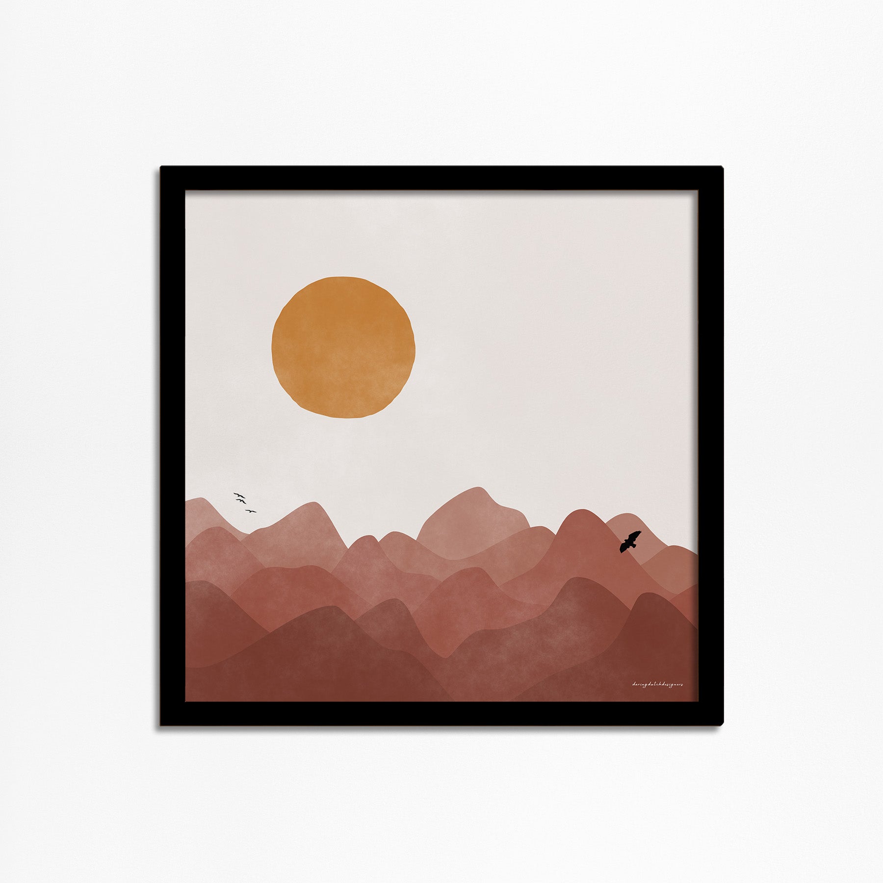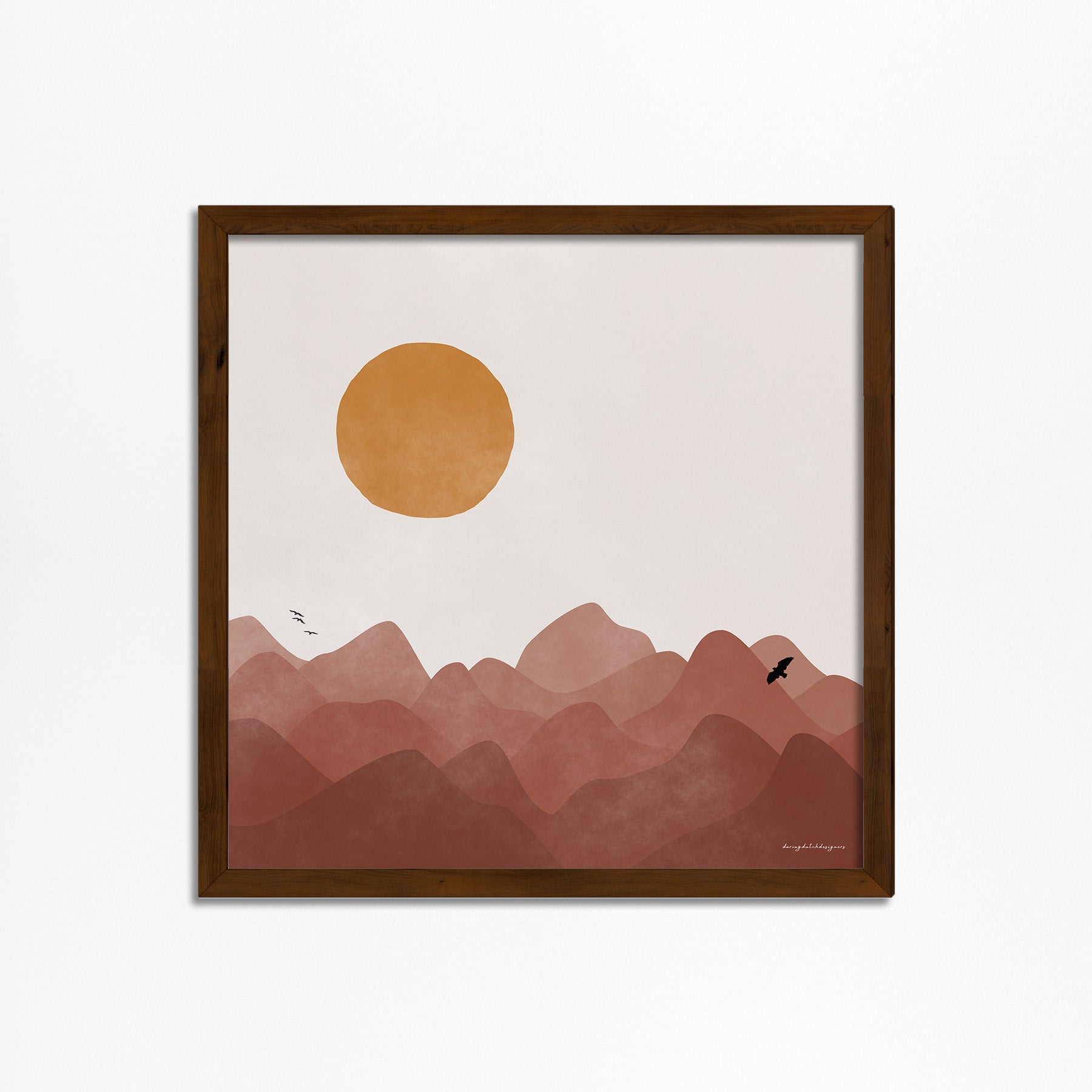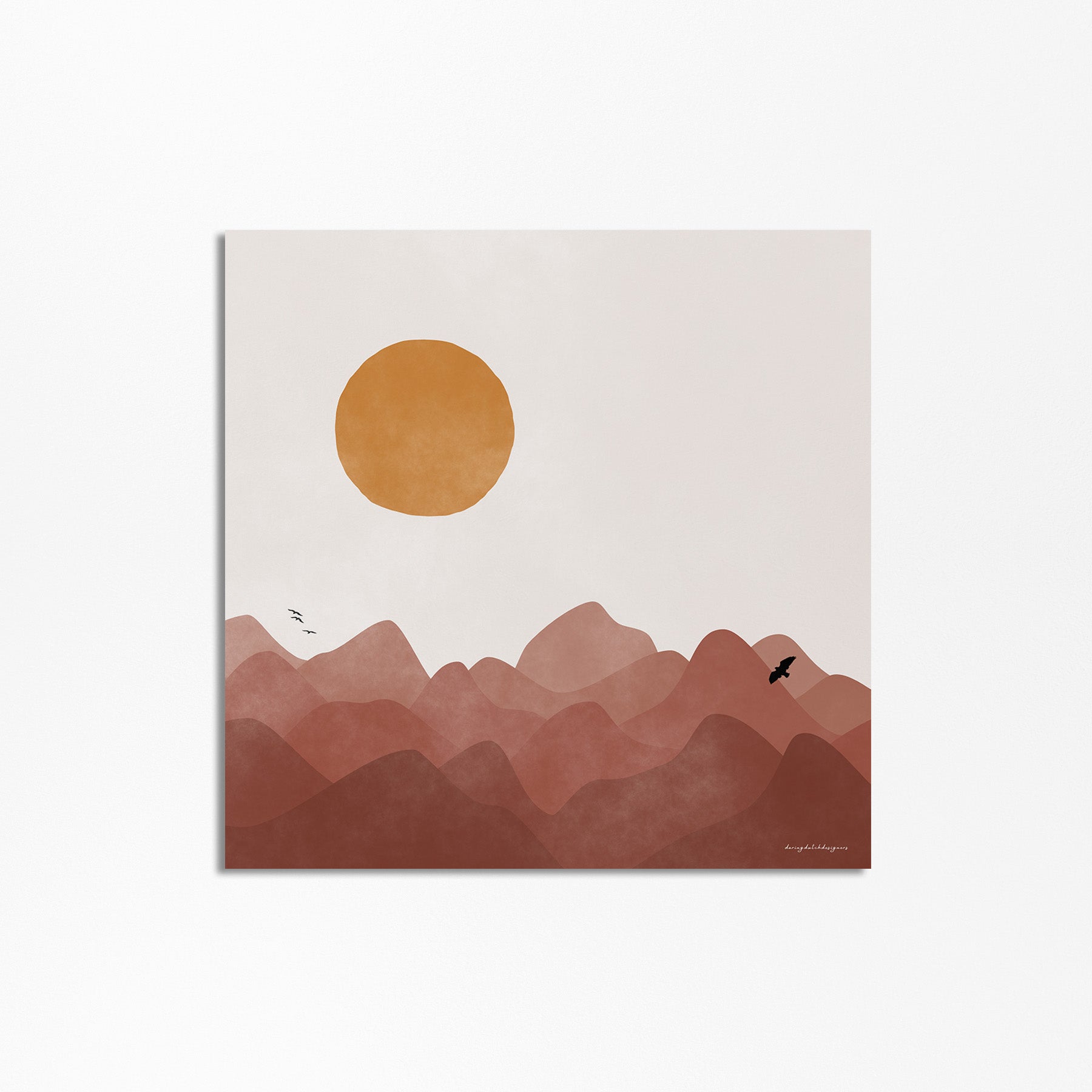 Kun je niet wachten tot je weer tussen de bergen kunt dwalen, zelfs als je net terug bent van je laatste avontuur? Laat deze vierkante poster je meenemen op een visuele reis, waar de aantrekkingskracht van een ruig berglandschap je uitnodigt om je dromen te verkennen. Laat je blik dwalen over de majestueuze toppen, ontdek de vogels die vrij rondvliegen en omarm de rust.