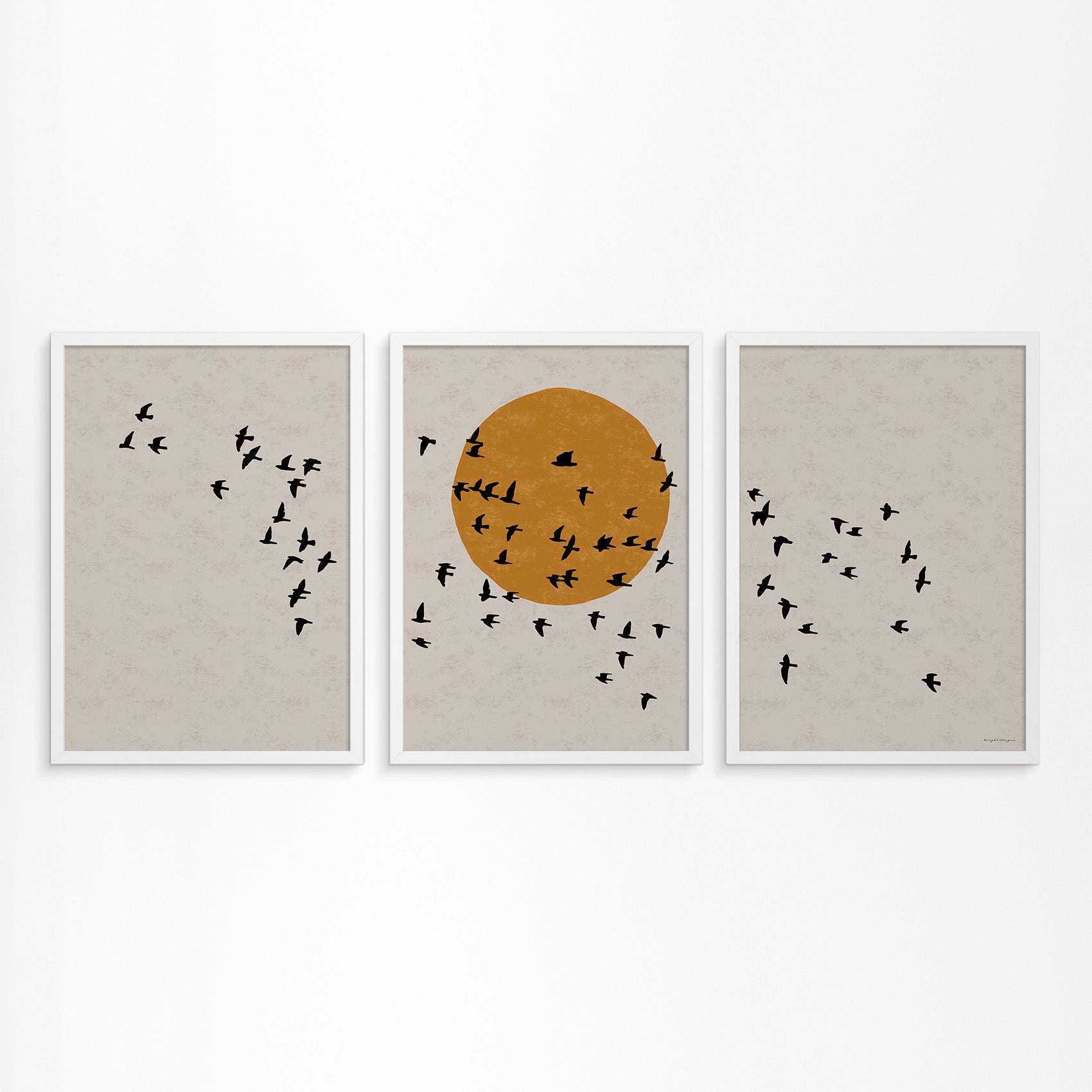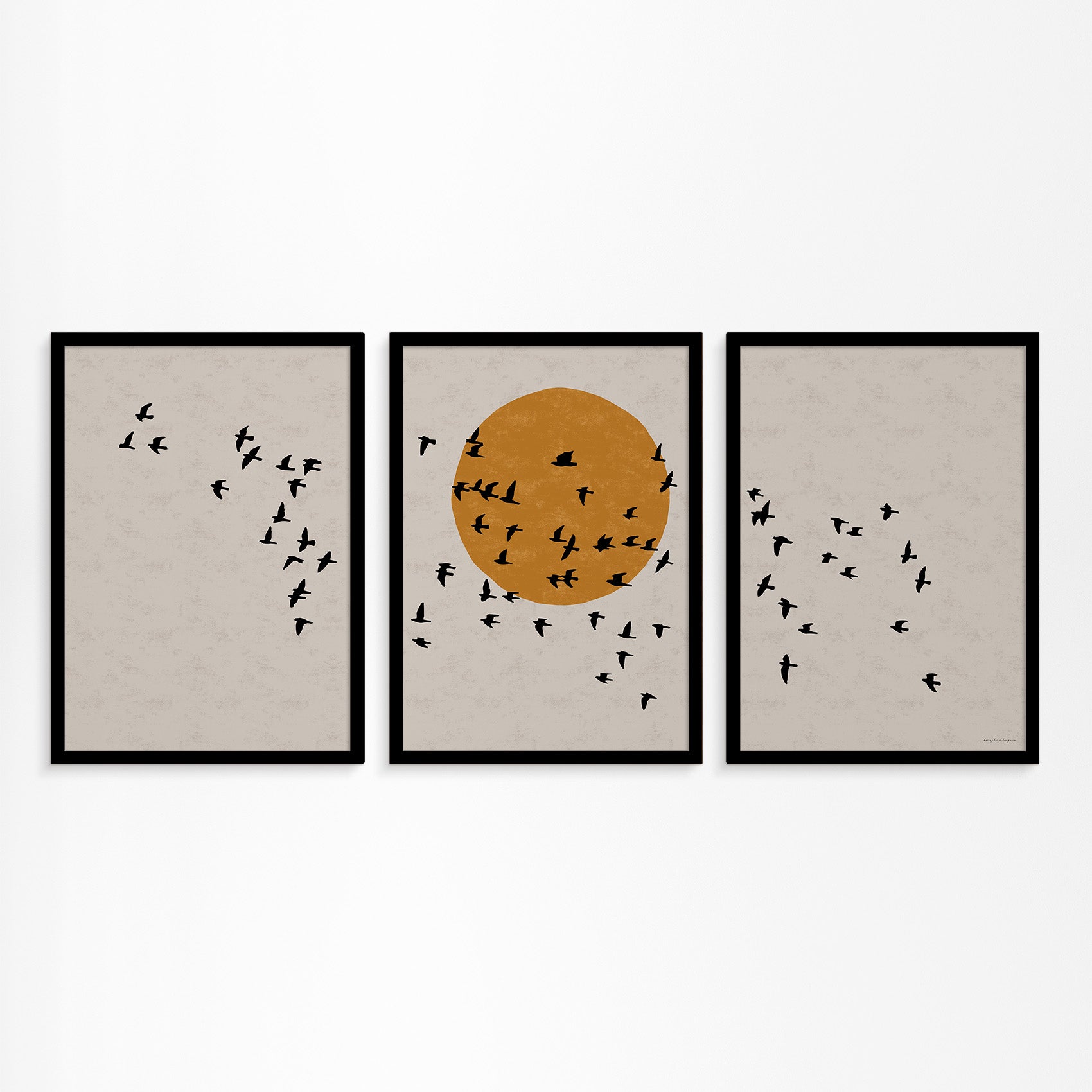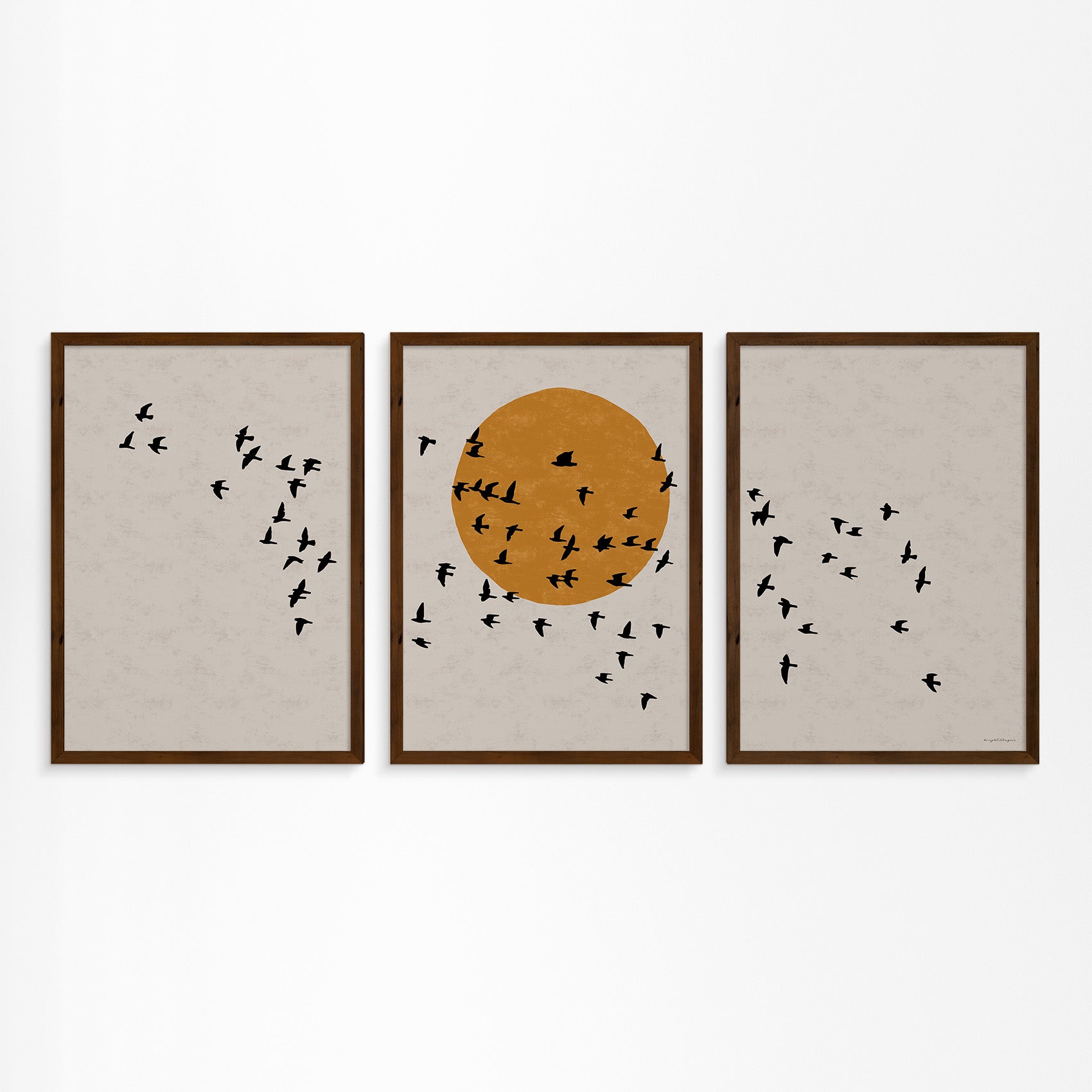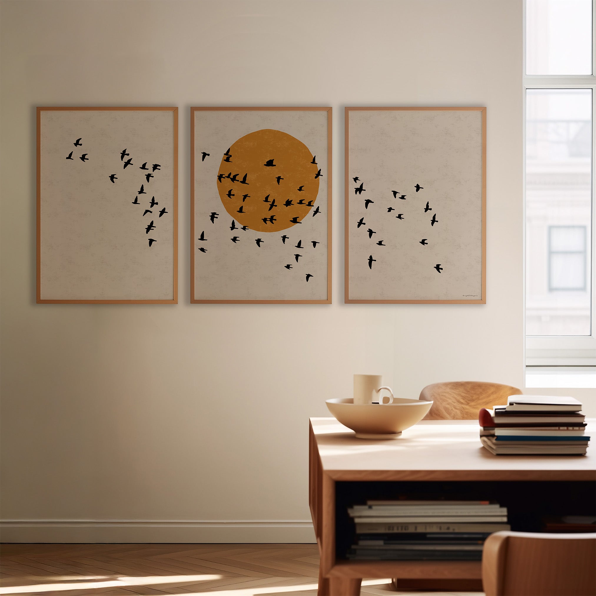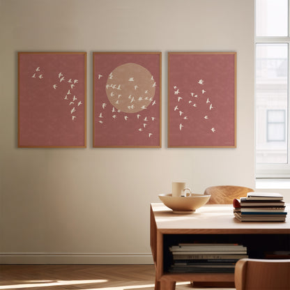 Drieluik Poster: Zon en Vogels in Vlucht
