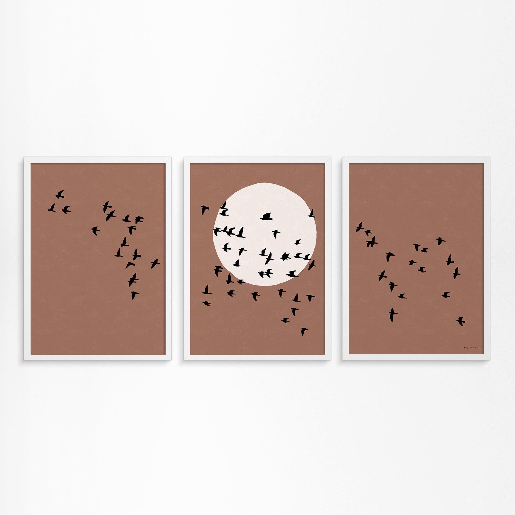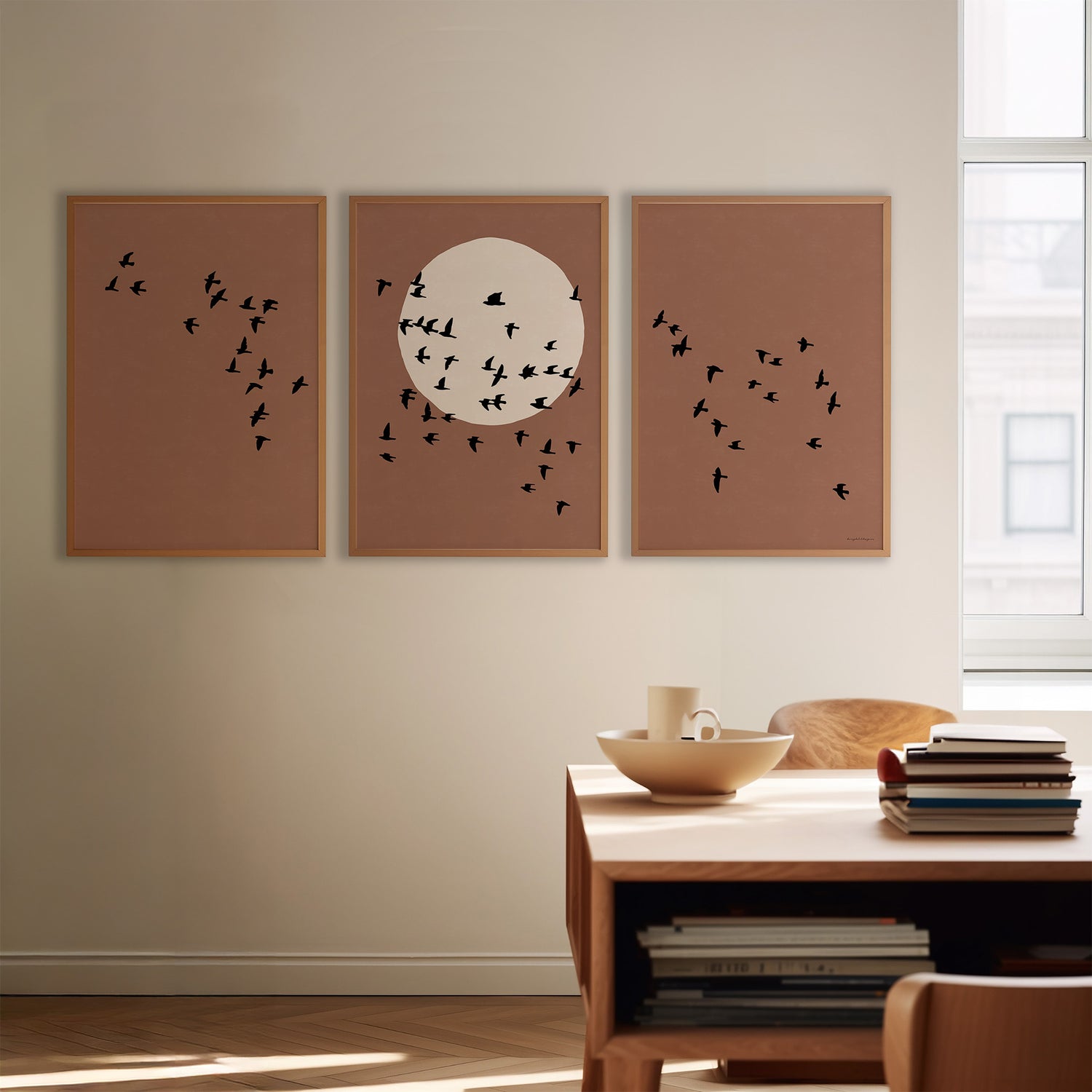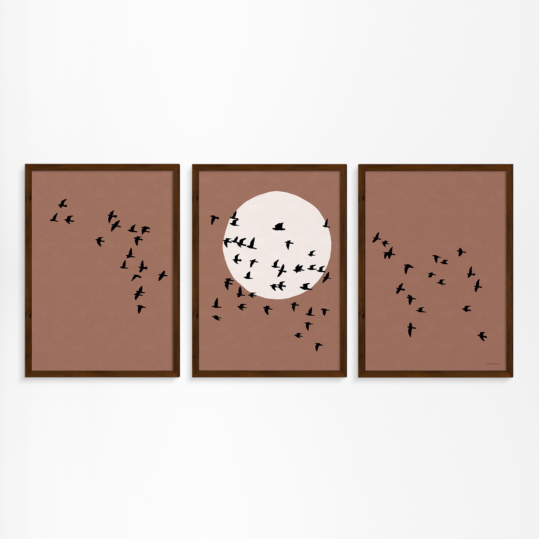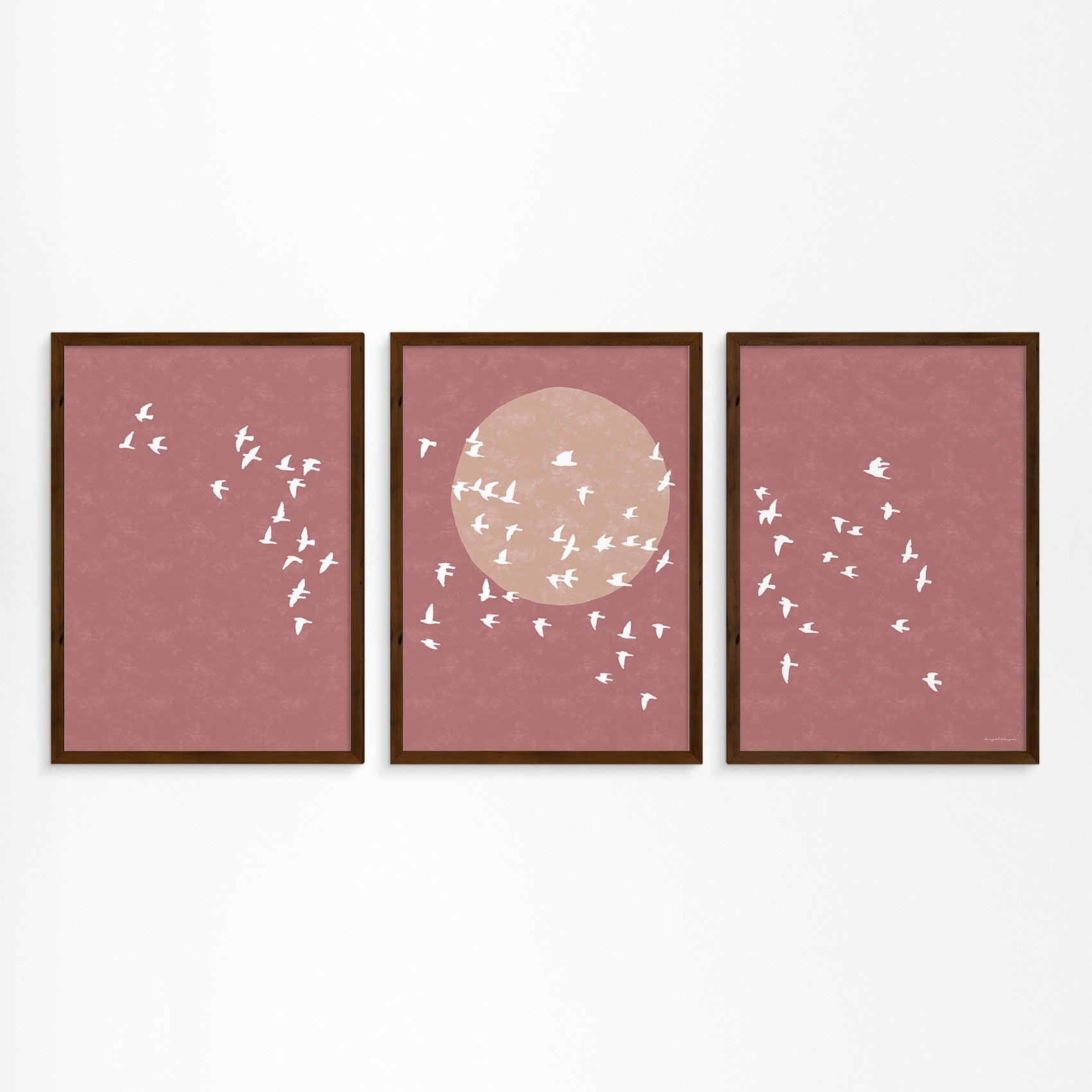 Drieluik Poster: Zon en Vogels in Vlucht