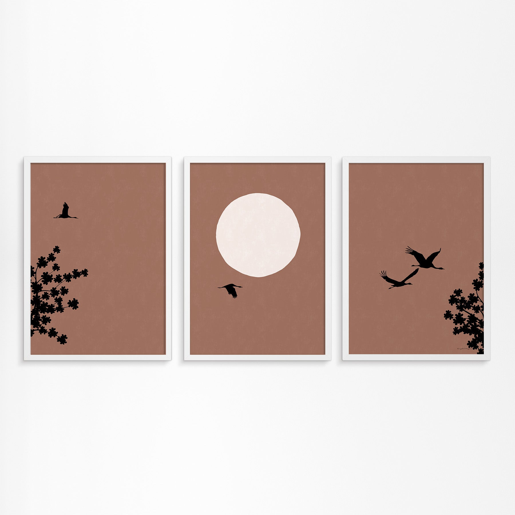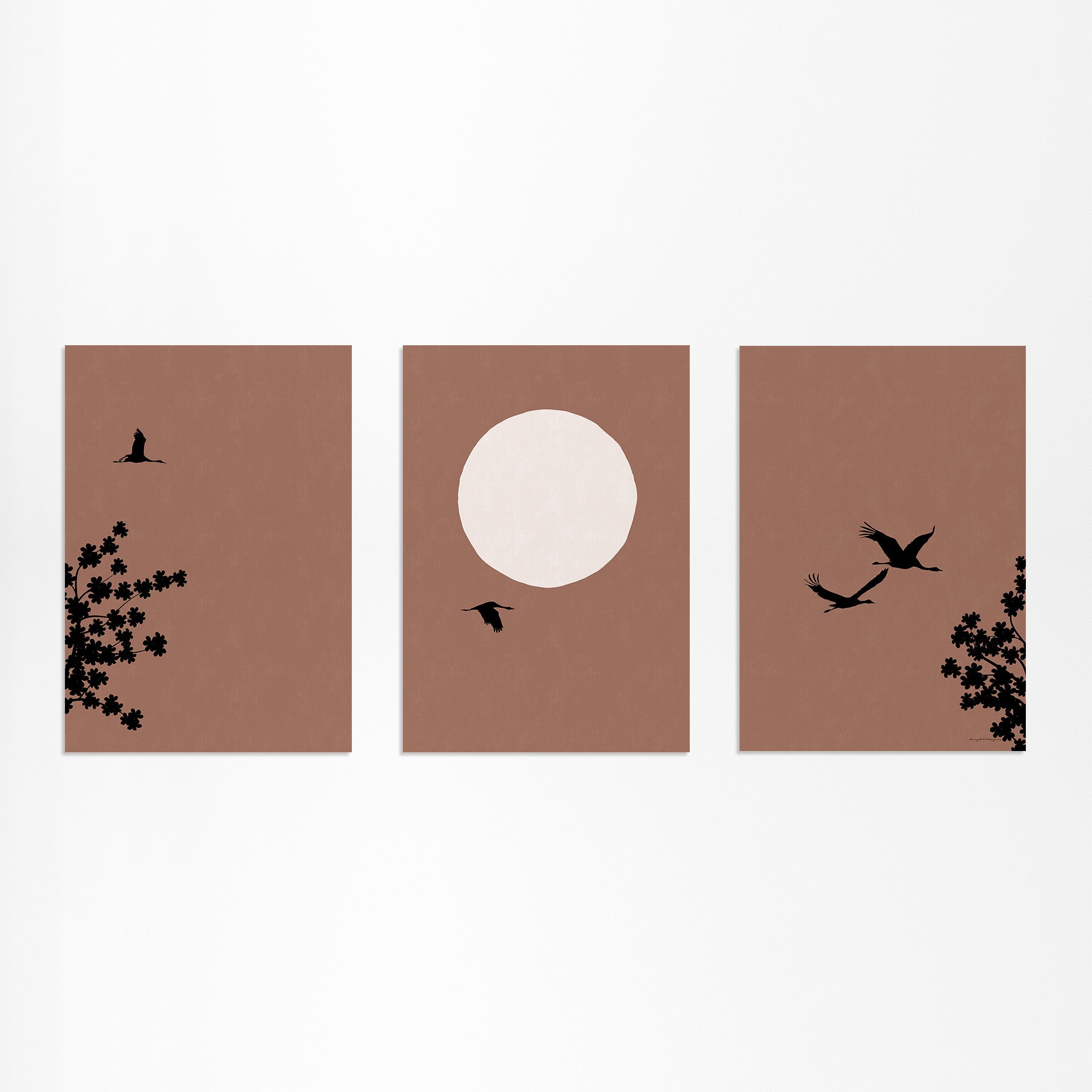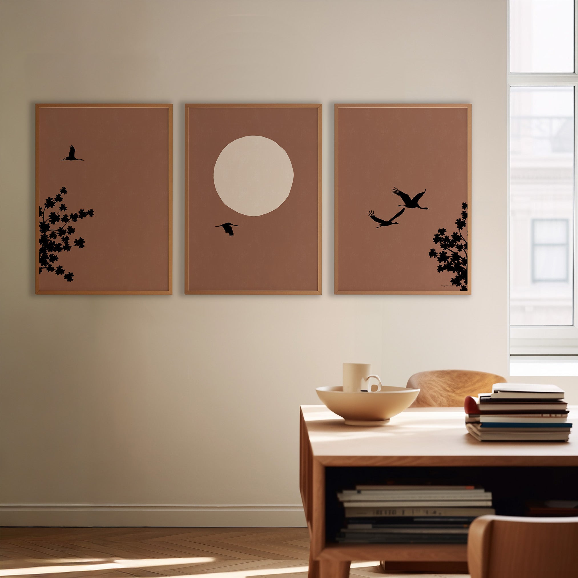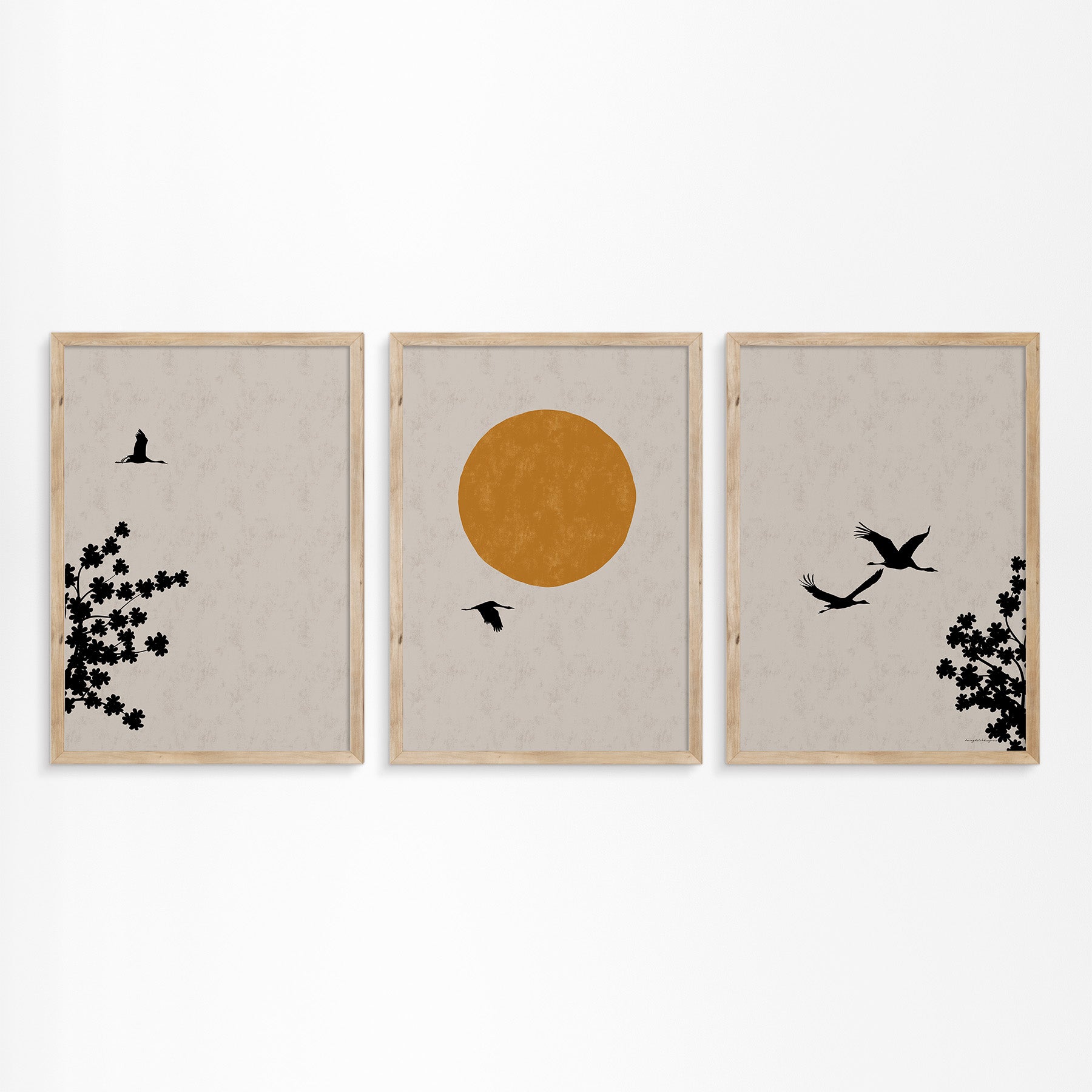 Zou je willen dat je je kon omringen met bloeiende bloesembomen en sierlijke kraanvogels, net als in een Japanse lente? En je de warmte van de zon voelt terwijl je deze serene scène bewondert? Deze prachtige drieluik poster brengt die rustgevende en warme sfeer naar jouw woonkamer of slaapkamer.
