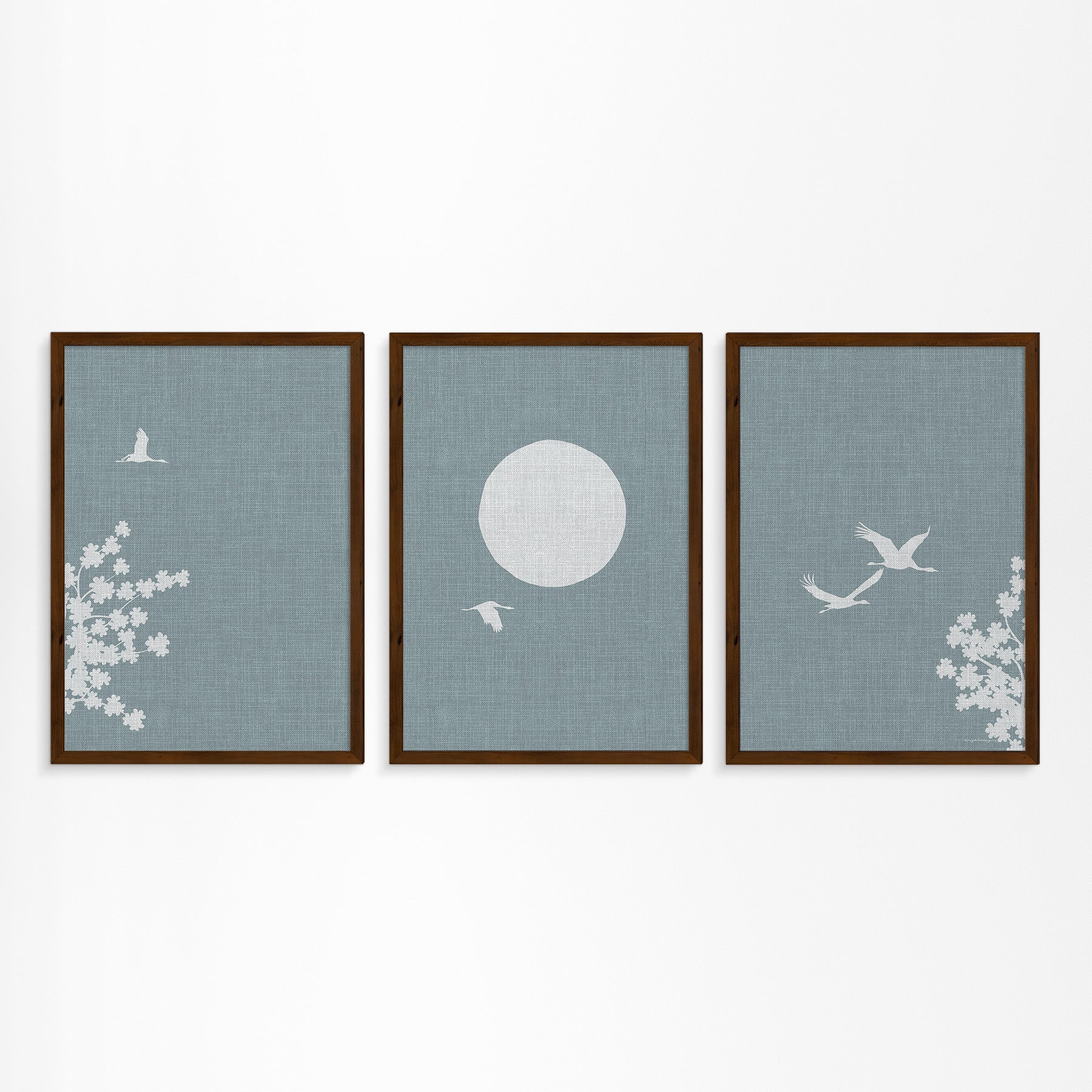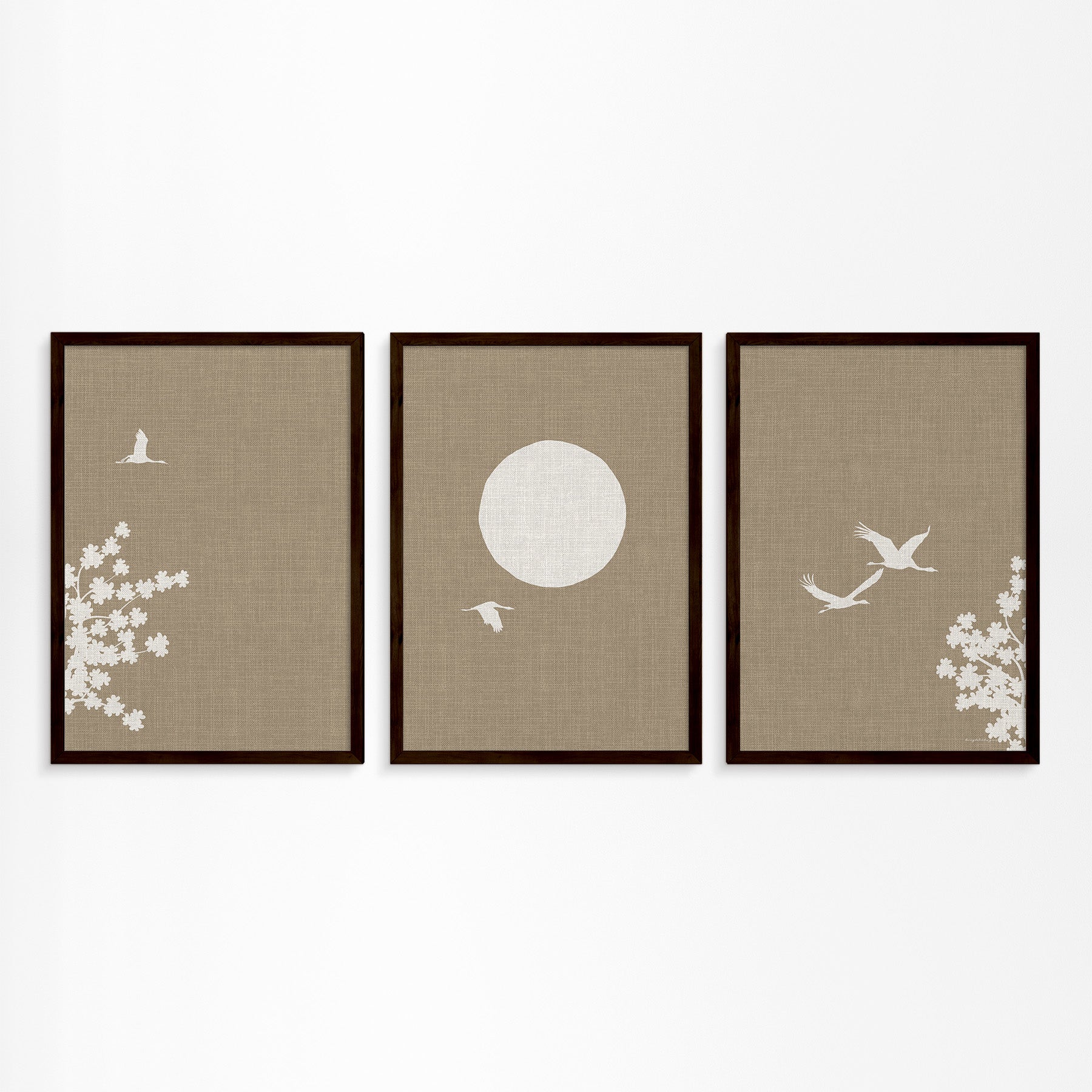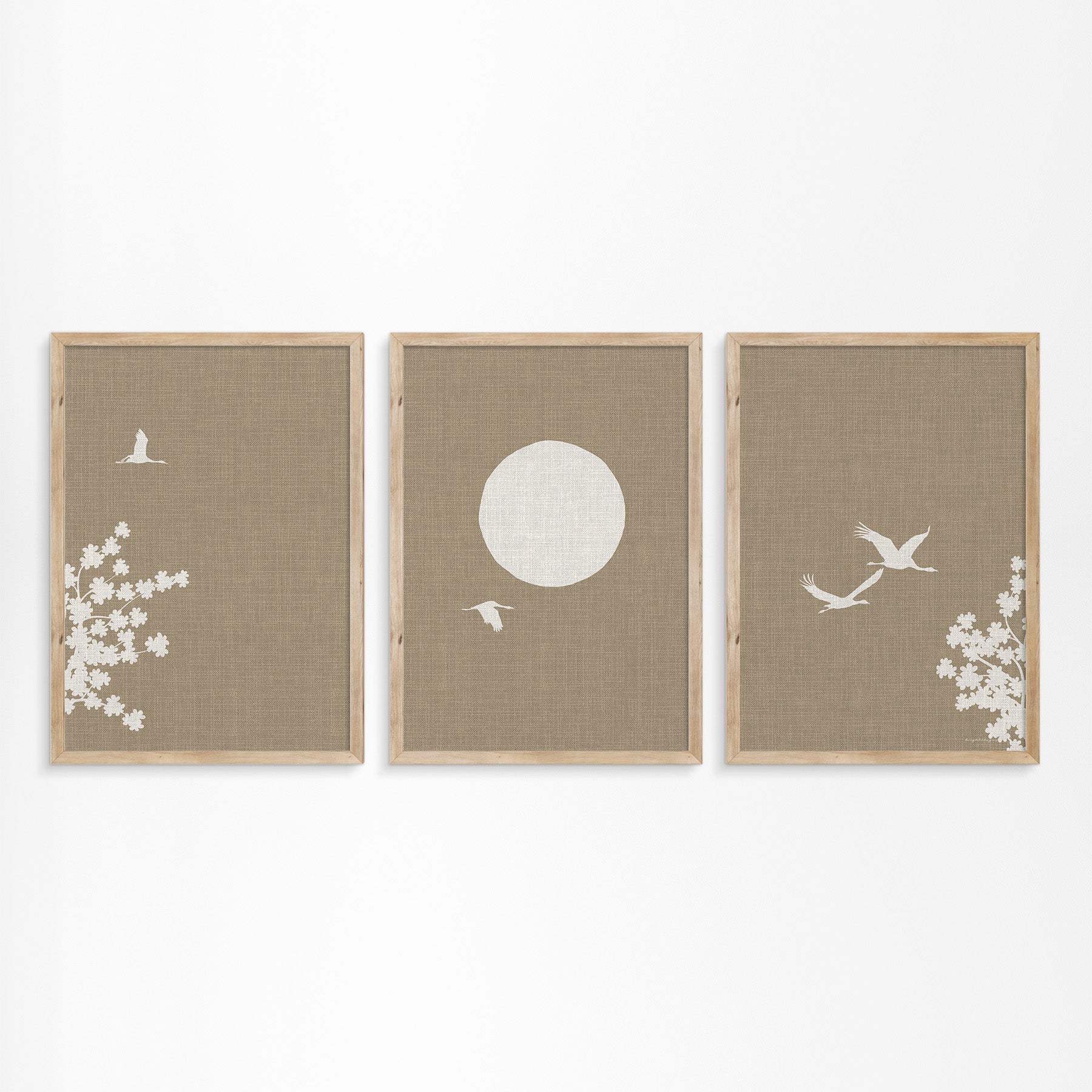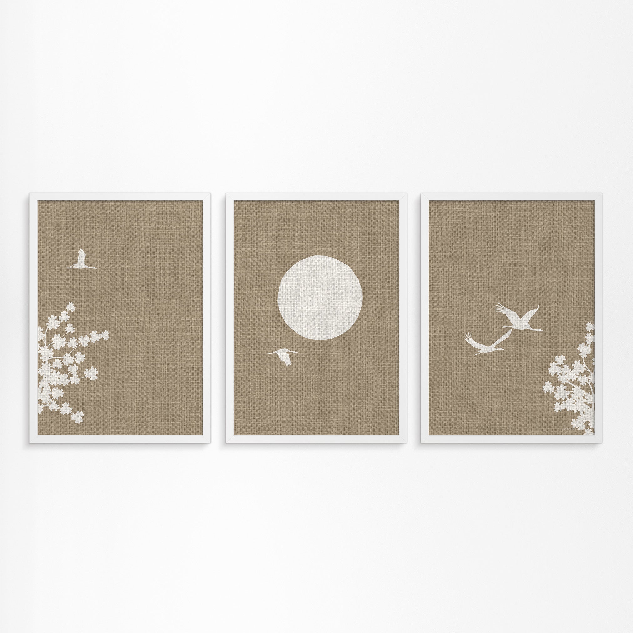Linnen Look Japanse Lente: Kraanvogels en Bloesemboom Drieluik Poster