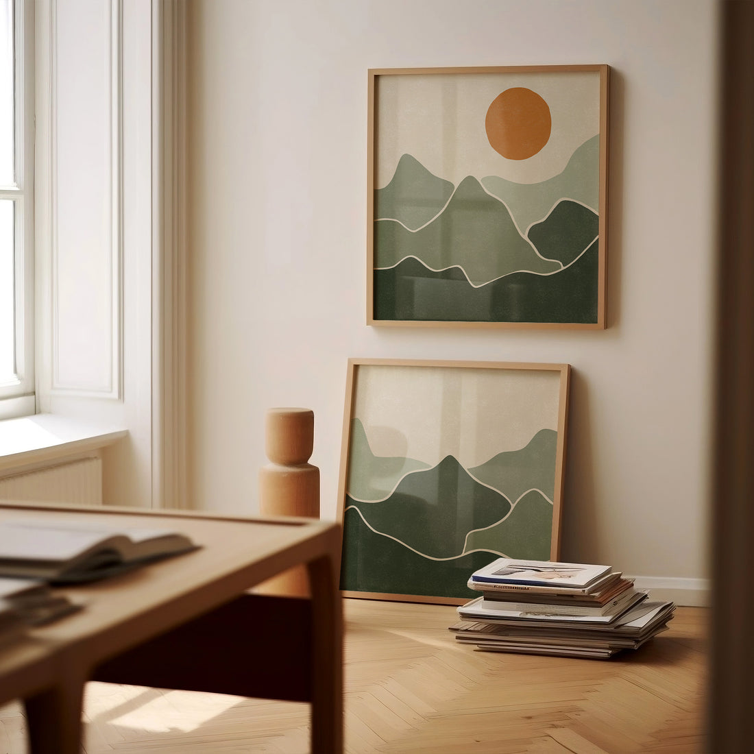 Adembenemende Bergtoppen: Een Tweeluik Poster Vierkant met KarakterAdembenemende Bergtoppen: Een Tweeluik Poster Vierkant met Karakter- Reguliere prijs