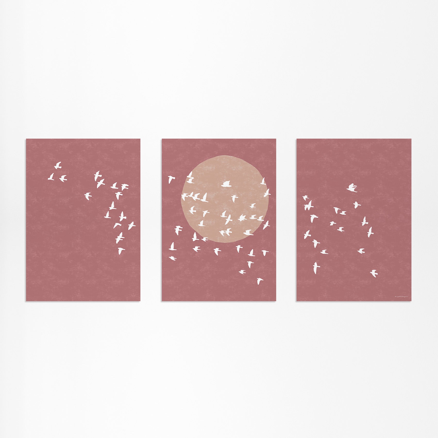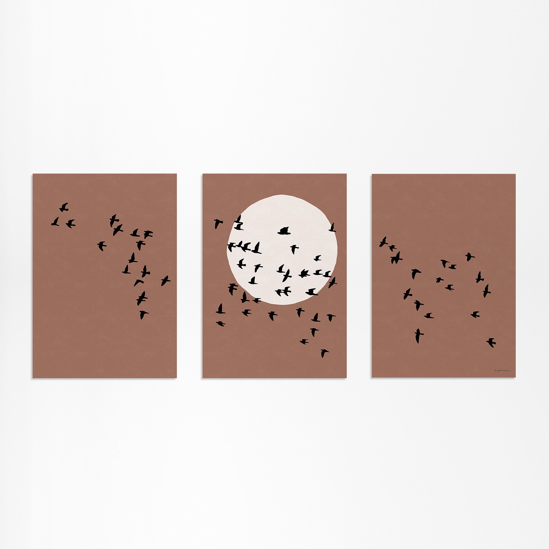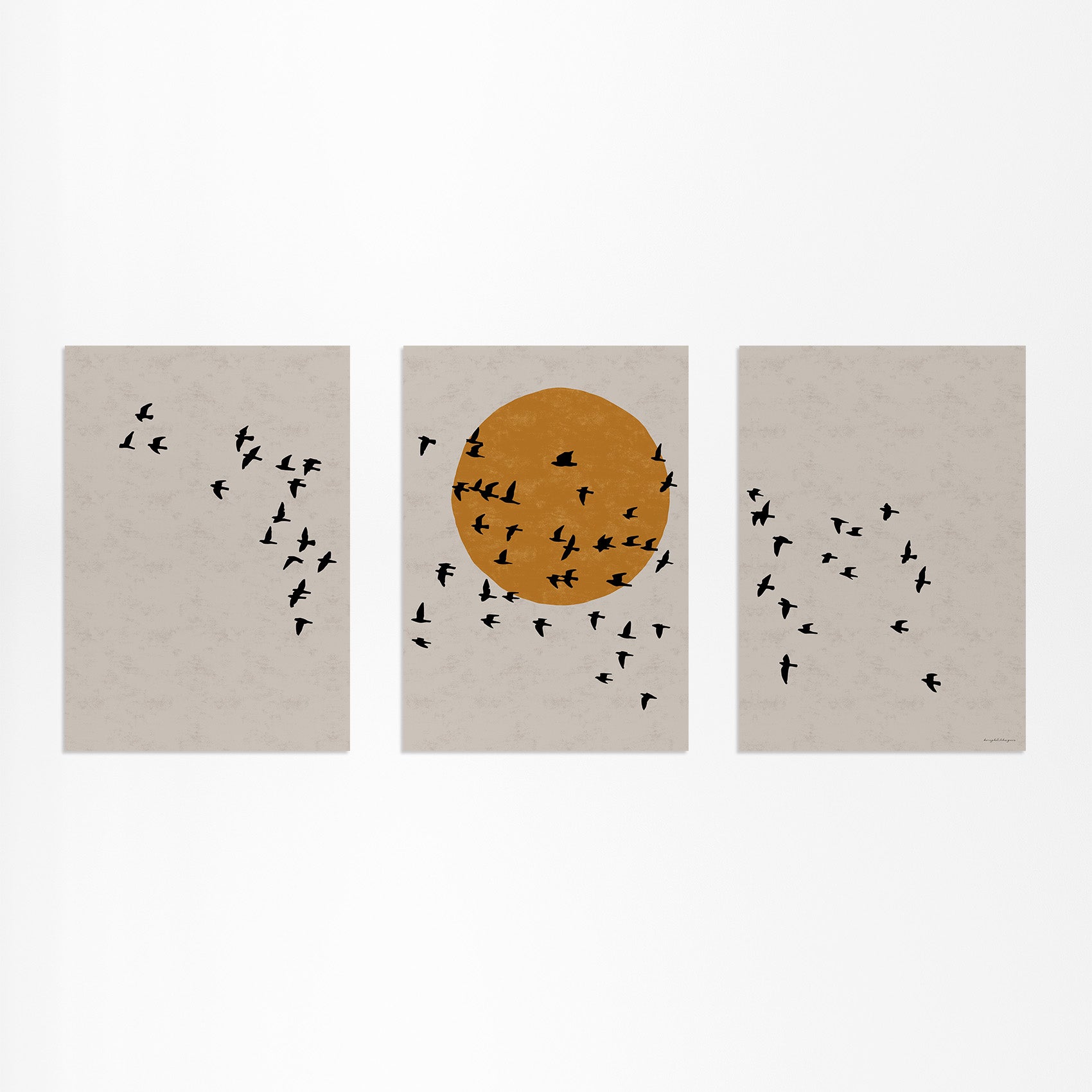 Drieluik Poster: Zon en Vogels in Vlucht