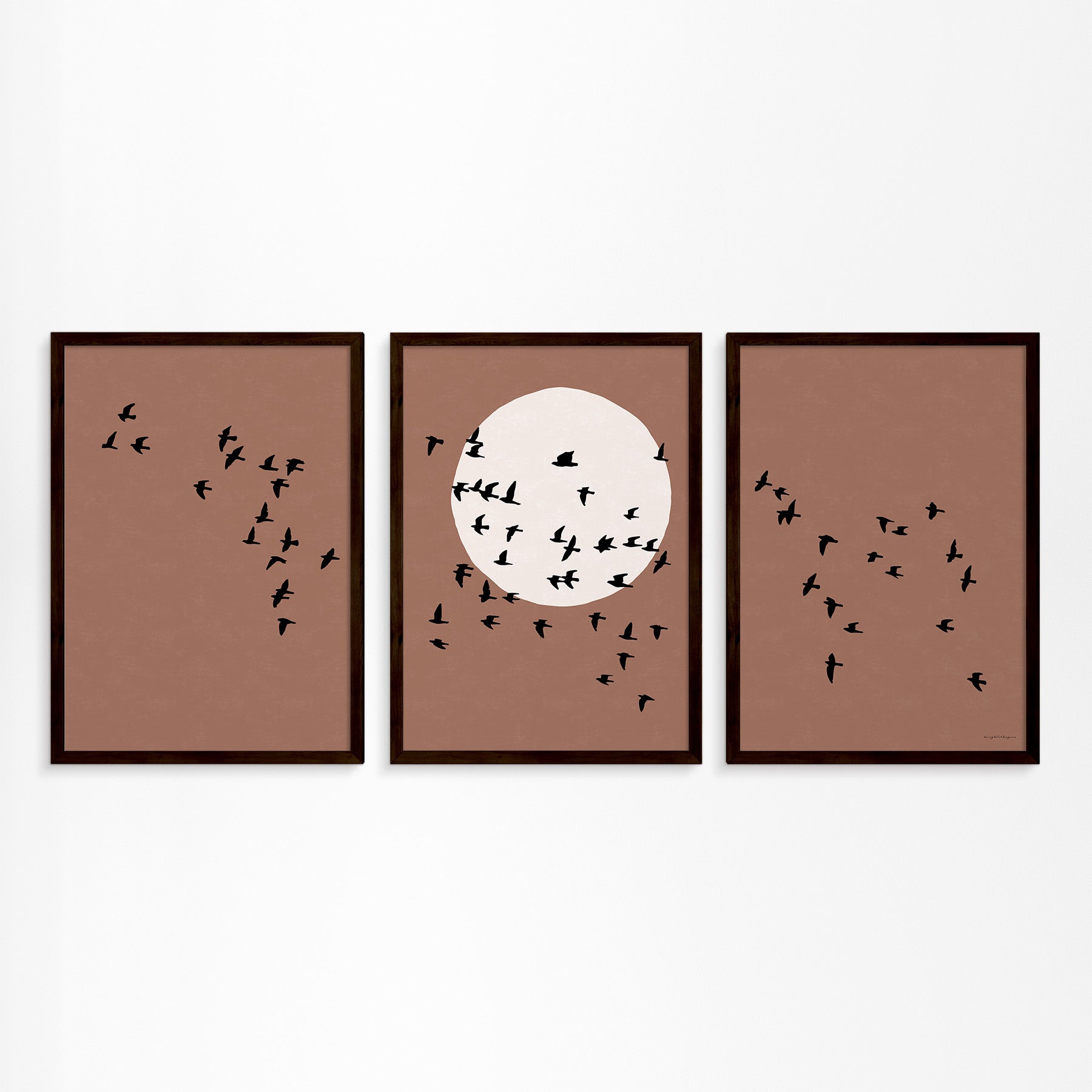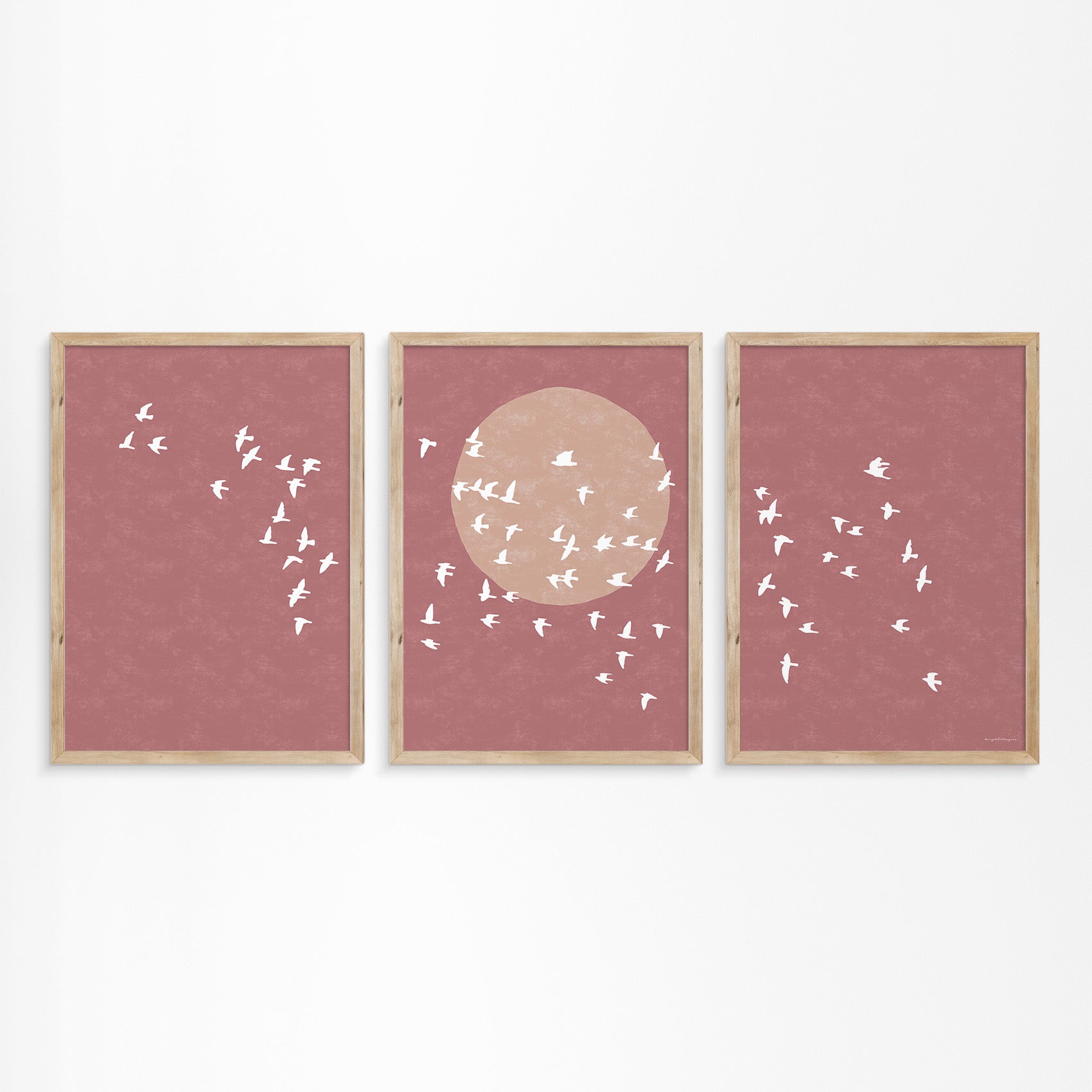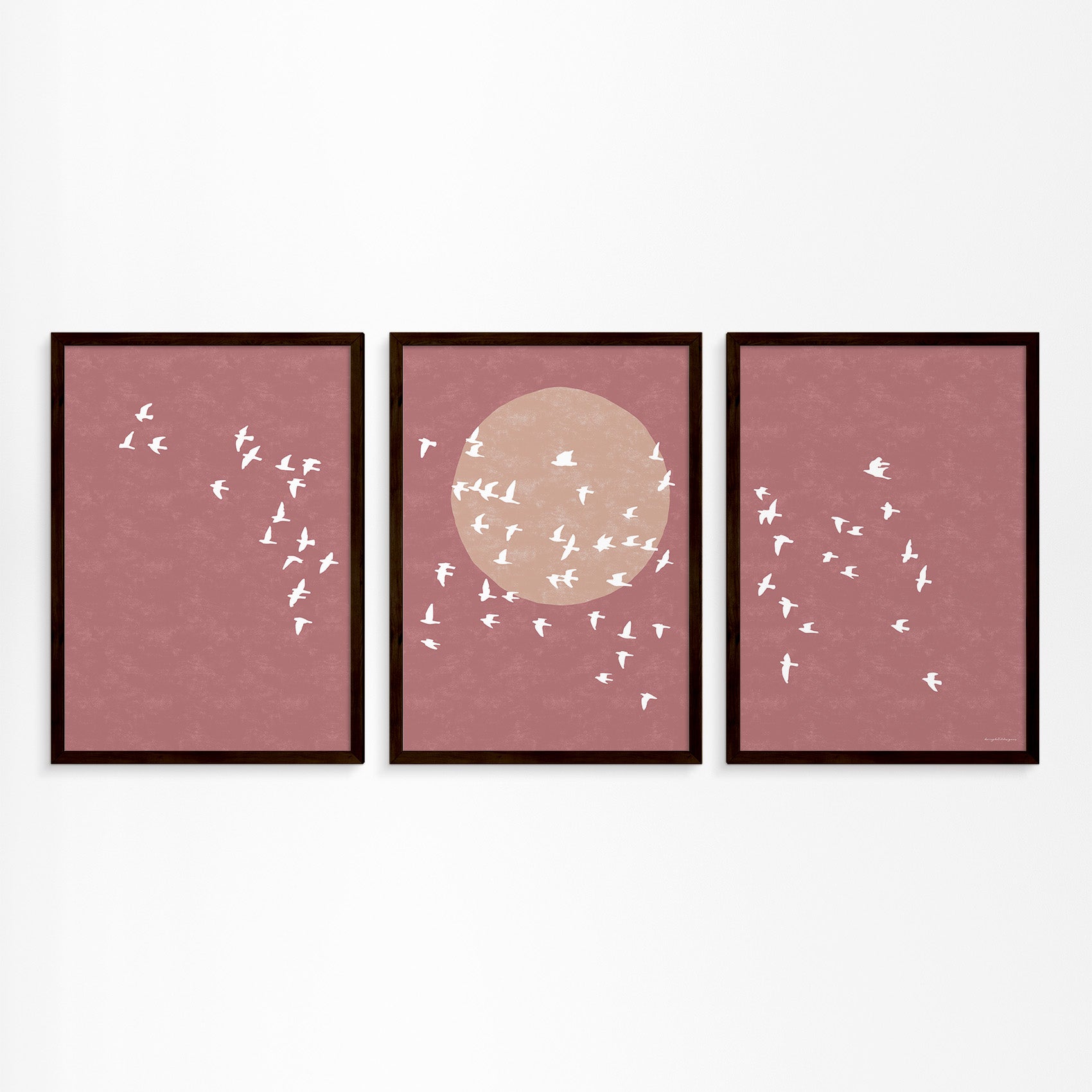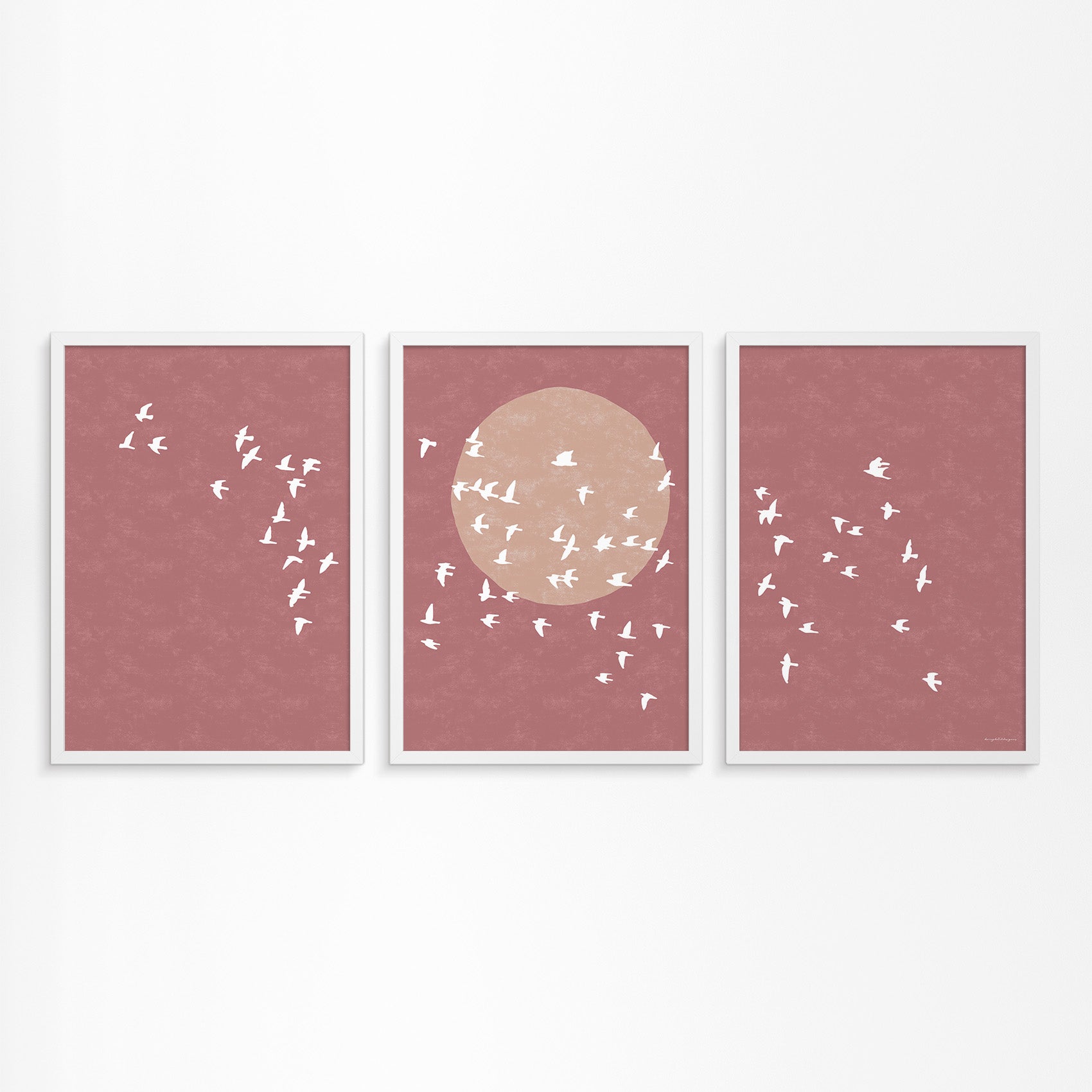 Drieluik Poster: Zon en Vogels in Vlucht