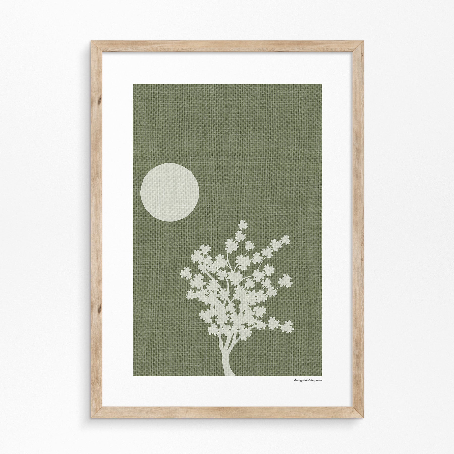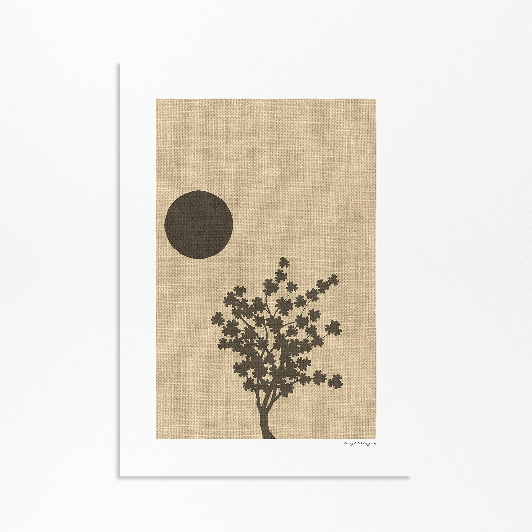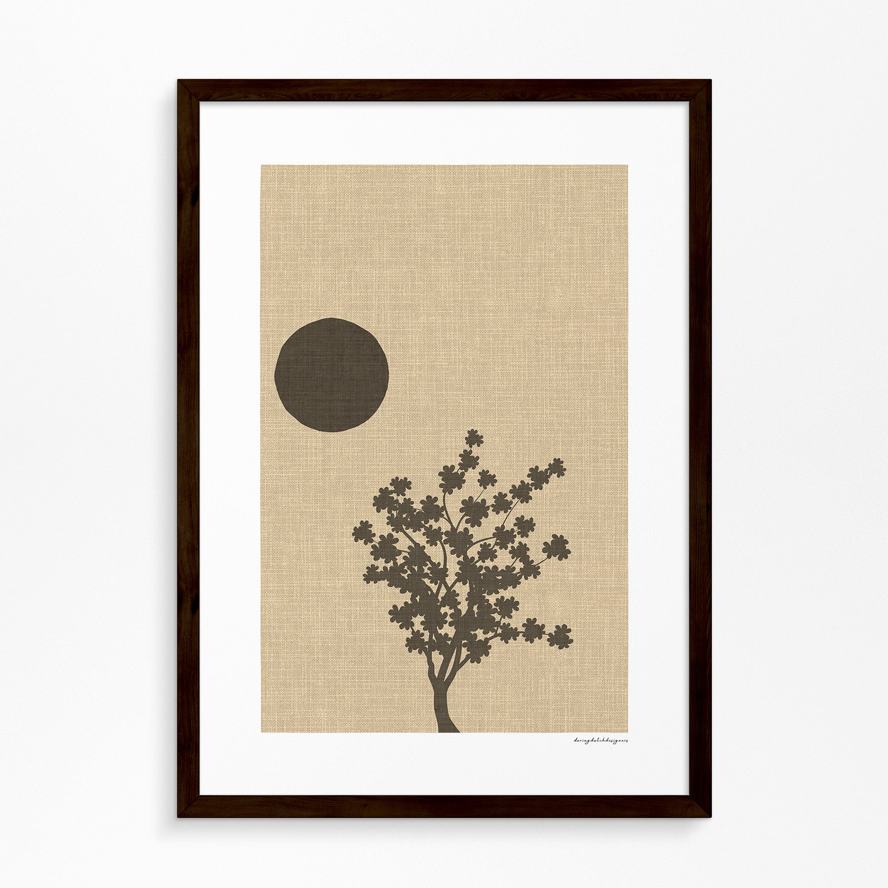 Linen-Look Blossom Tree and Sun Poster – Japandi Wall Art