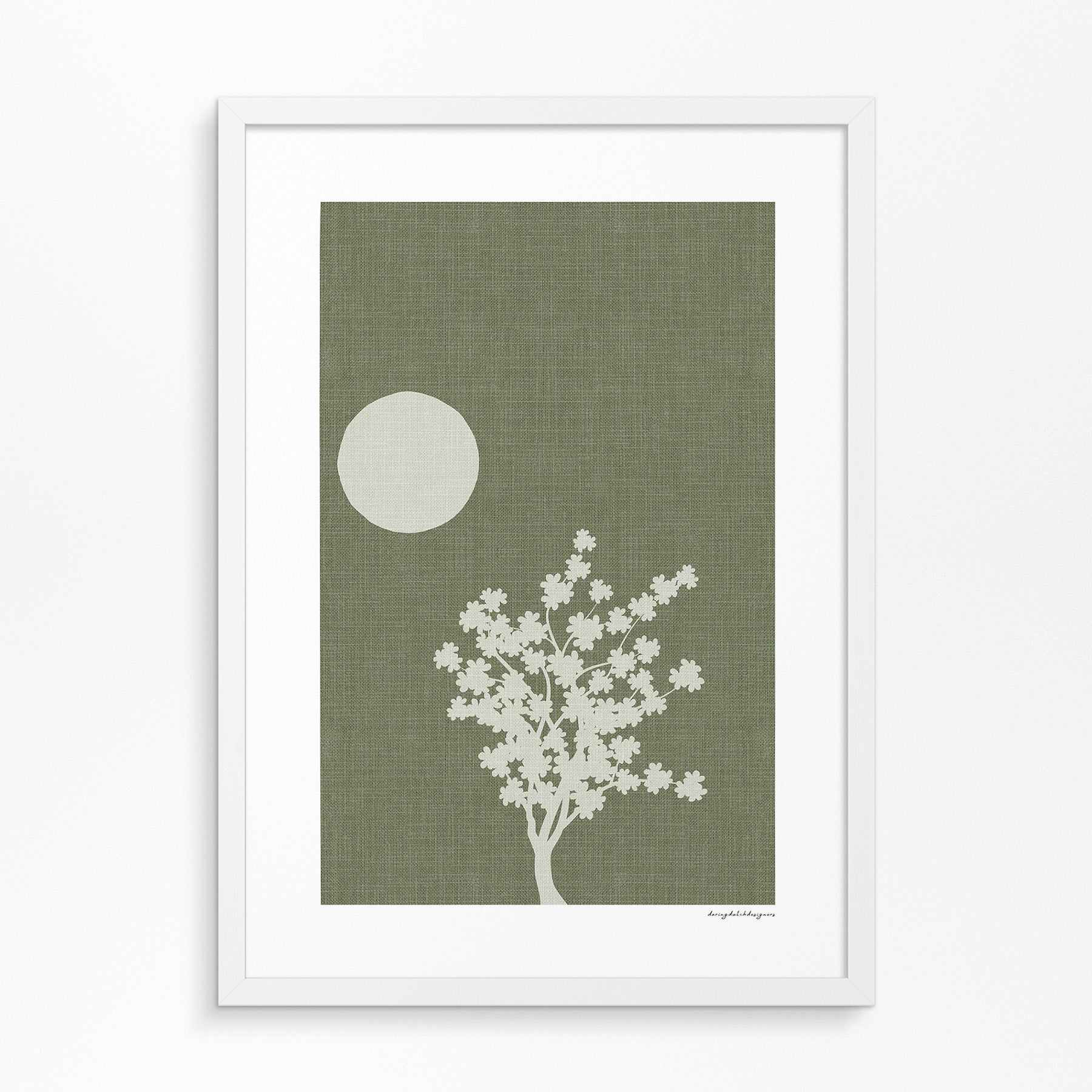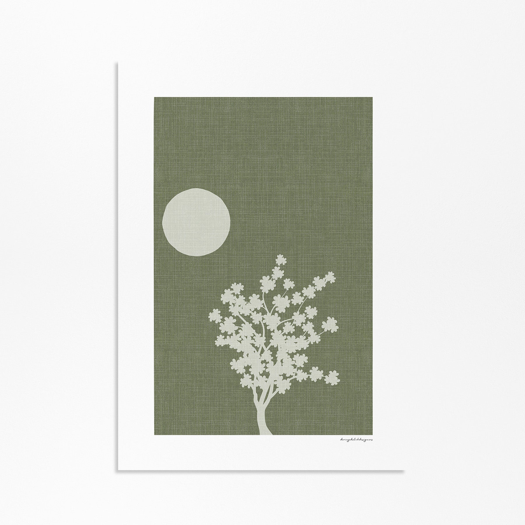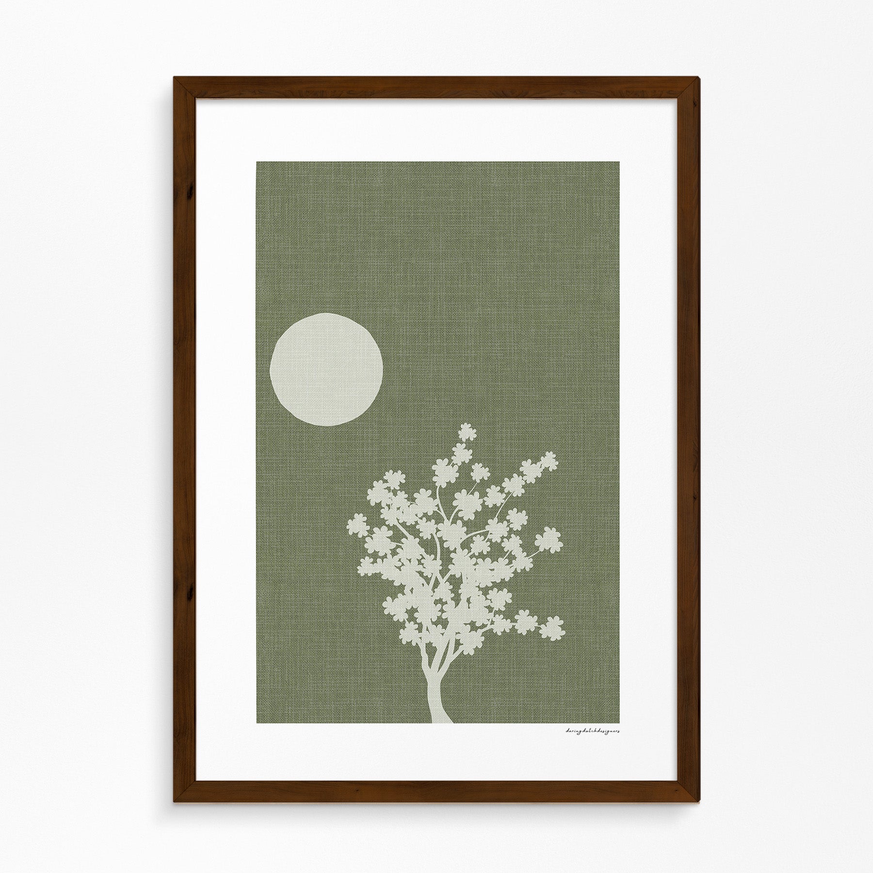 Linen-Look Blossom Tree and Sun Poster – Japandi Wall Art