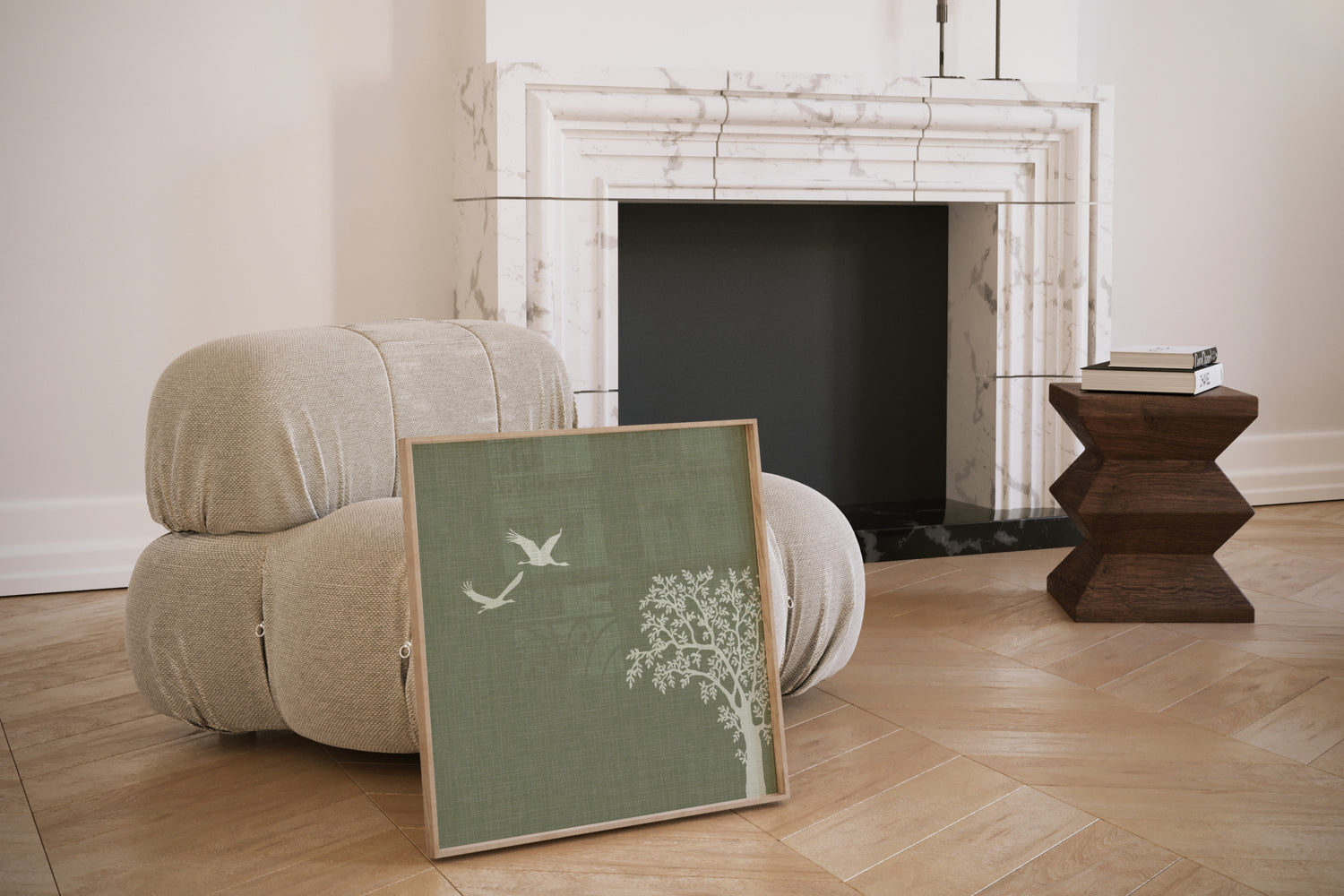 Your walls are not just boundaries; they are canvases waiting to tell a story in Japandi Style. Adorn them with art prints that capture the essence of nature – serene landscapes, delicate cherry blossoms, or abstract representations of harmony. Encased in wooden frames, these art prints seamlessly integrate into the Japandi aesthetic, adding a touch of personal expression to your sanctuary.