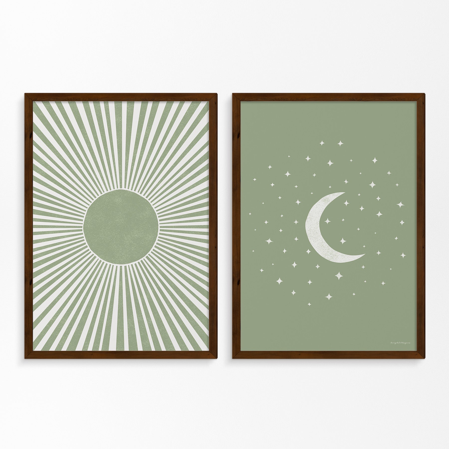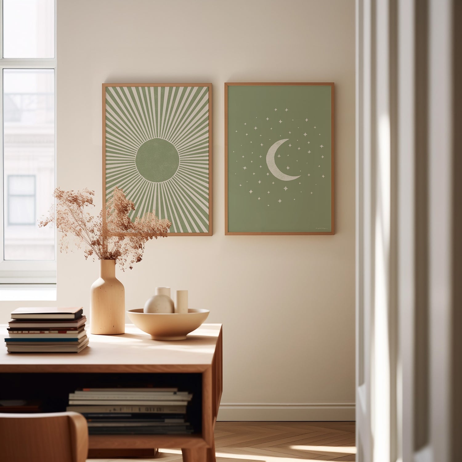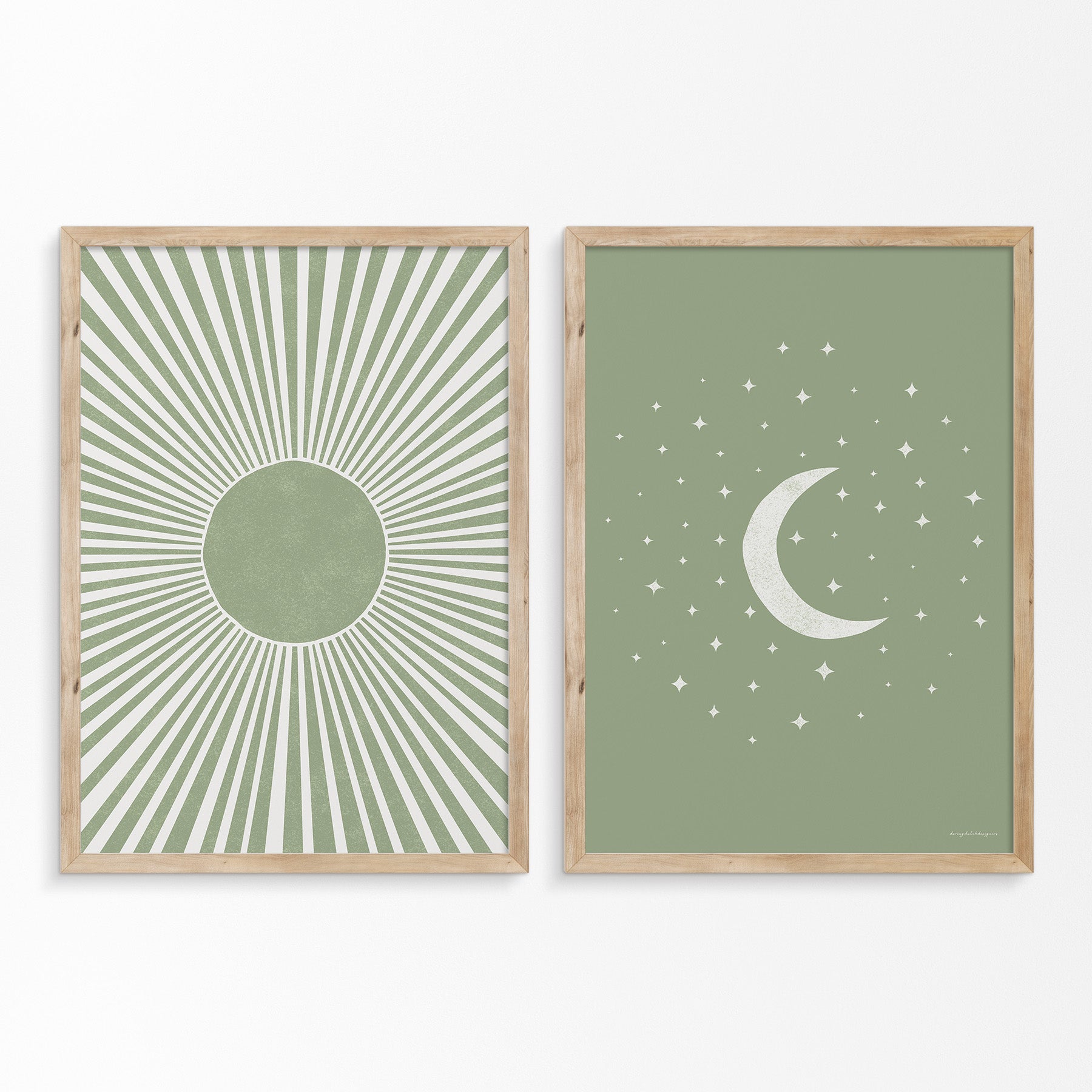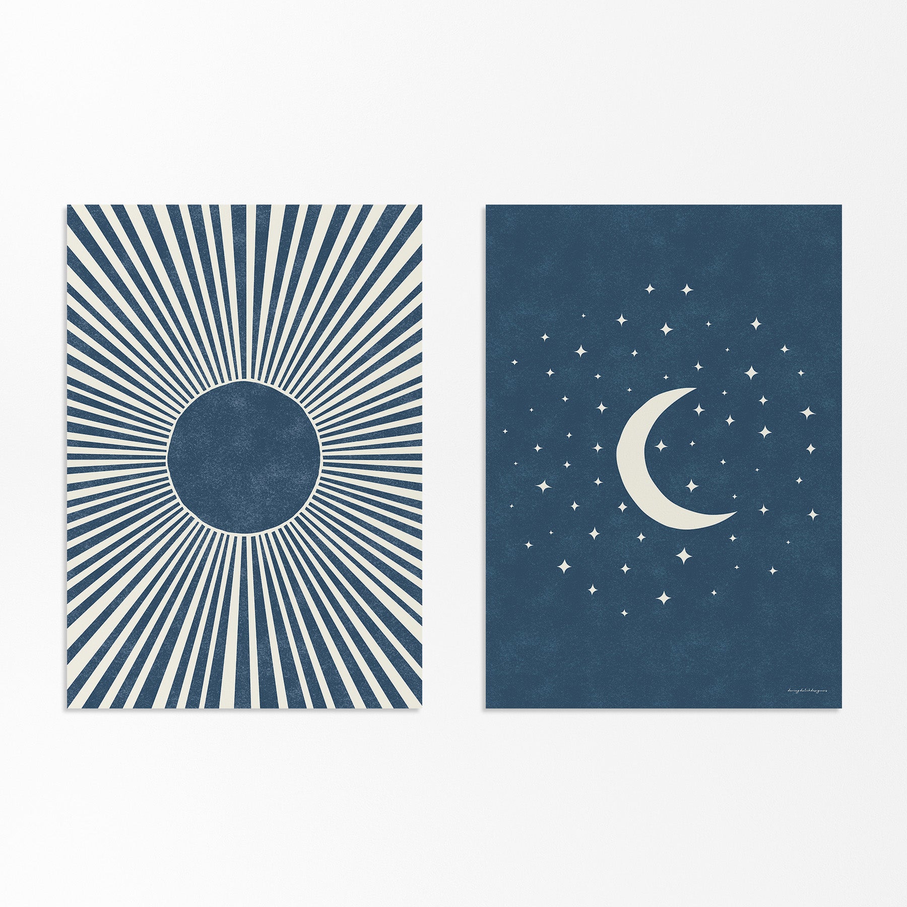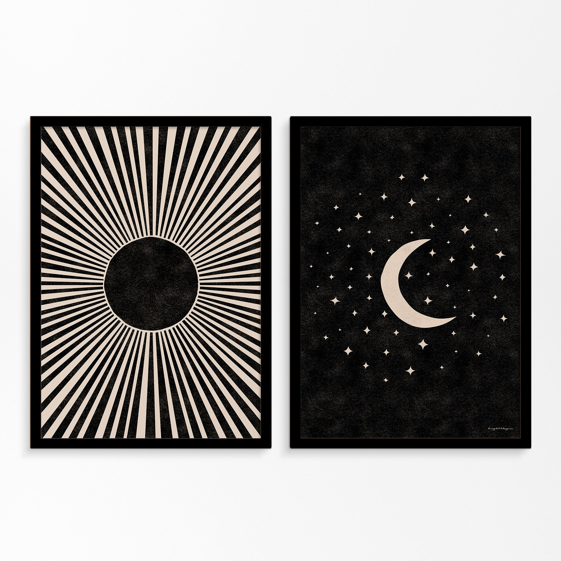 Let the Sun and Moon Diptych Poster remind you of the beauty of nature and the magic of the night. Perfect for adding a touch of boho charm to your space, or hang it in a child's room or nursery to create an inspiring environment where little ones can dream of distant galaxies and sunny adventures.