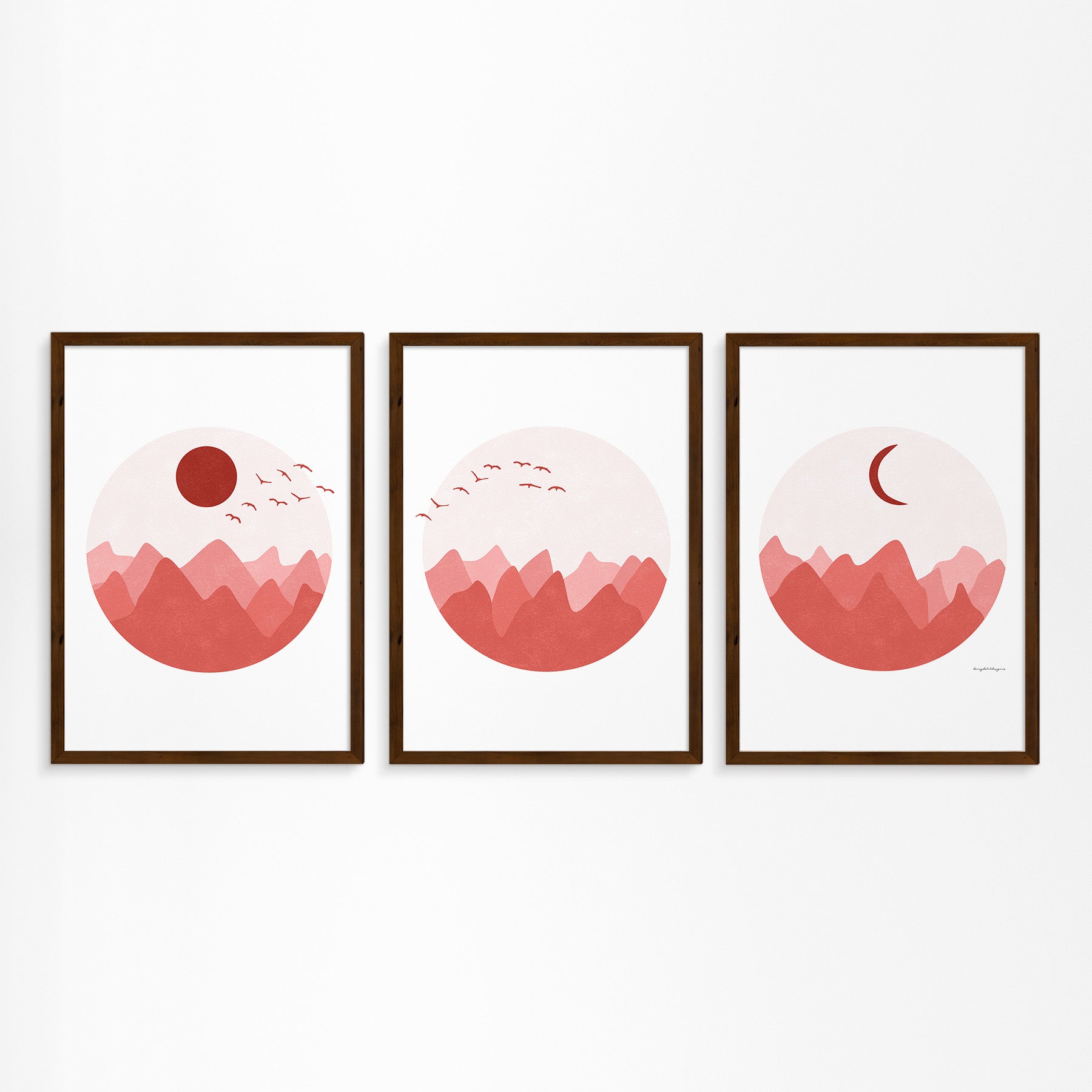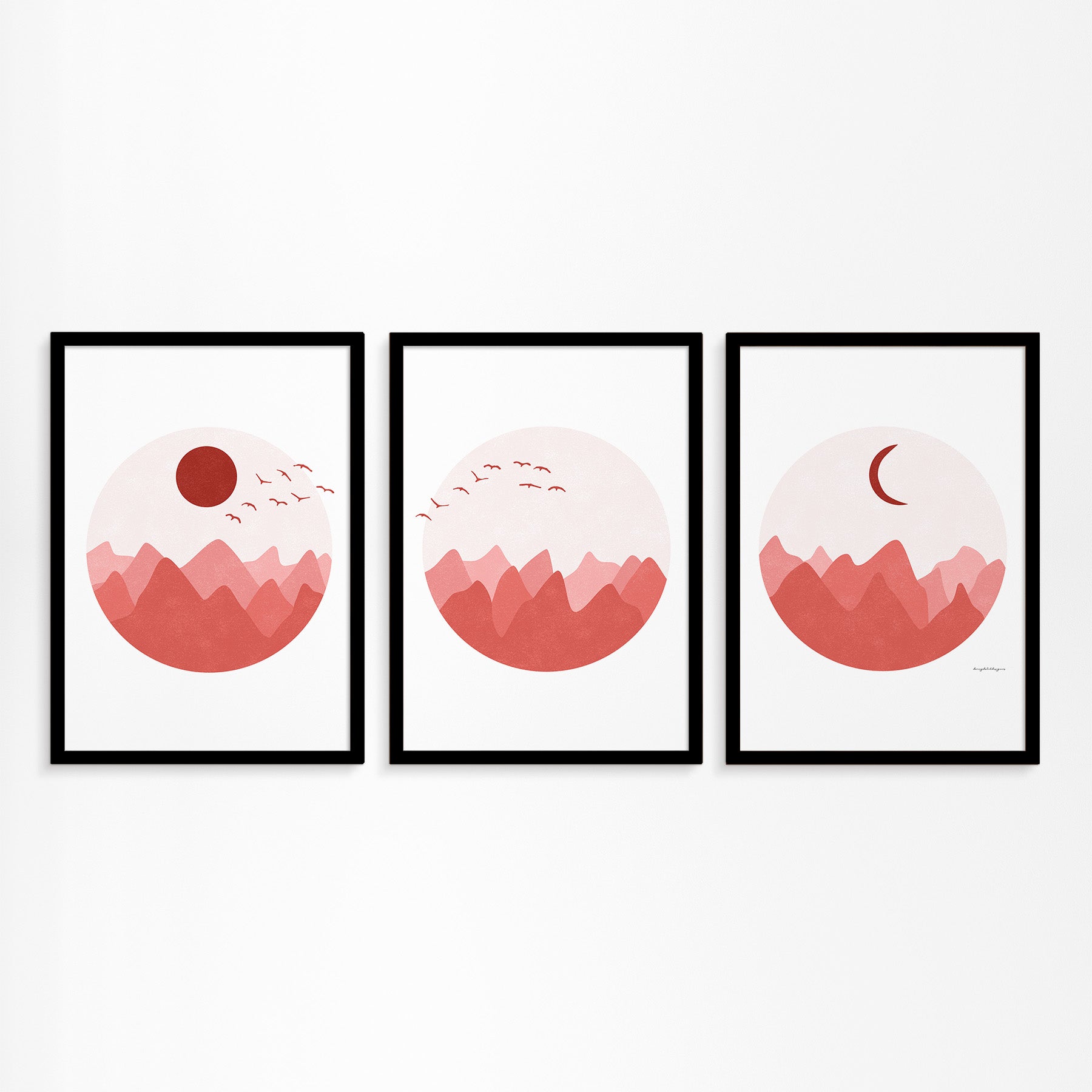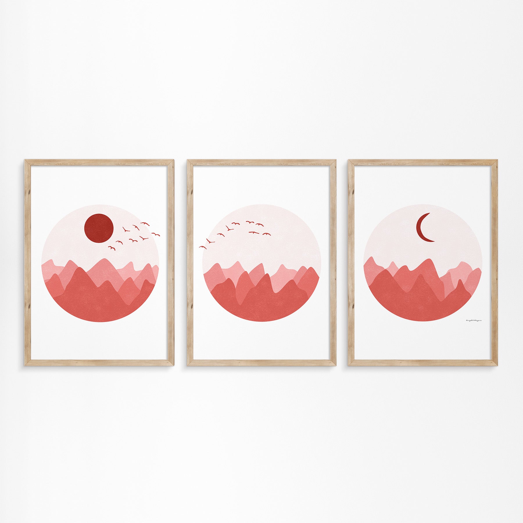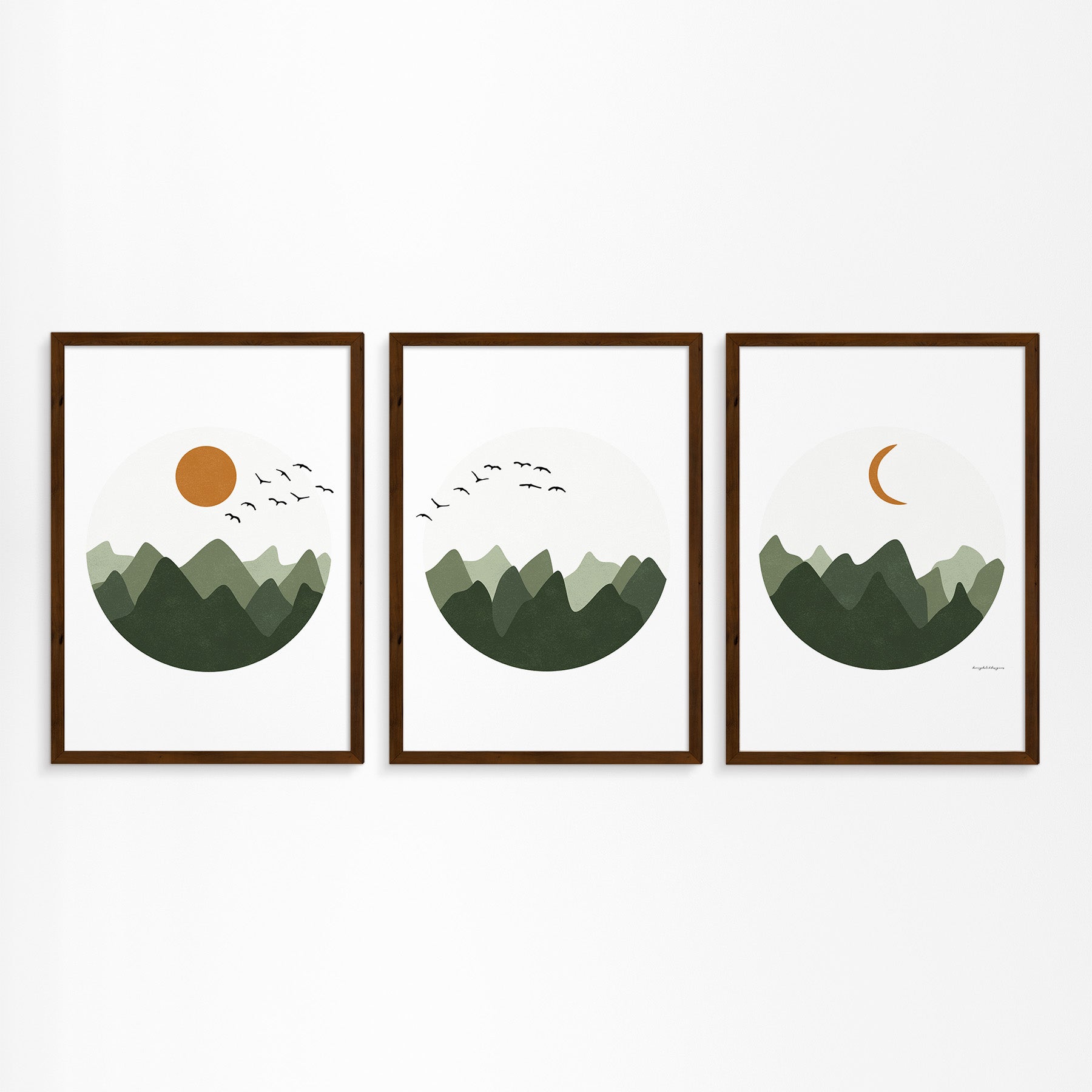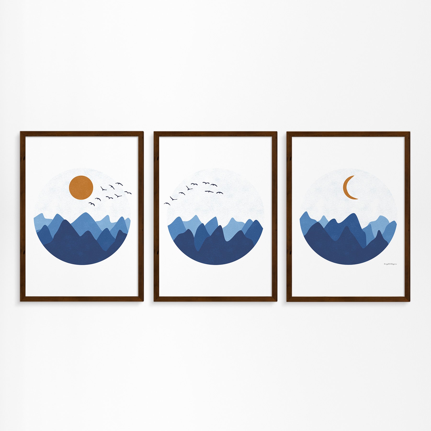 Breng de magie van de bergen naar je muur met deze drieluik poster. Elke cirkel nodigt je uit om weg te dromen – van zonovergoten pieken, maanverlichte nachten en vogels die vrij rondvliegen.