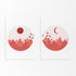 Breng de sfeer van een bergchalet naar je huis met deze tweeluik poster! Elke cirkel is een venster naar jouw droomlandschap – bergen verlicht door zon en maan, en vogels die hoog door de lucht zweven.