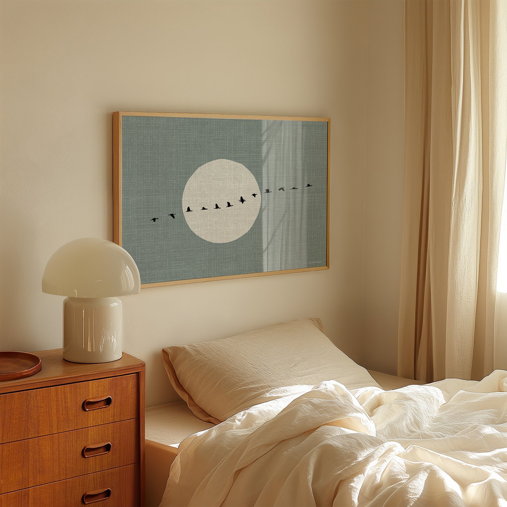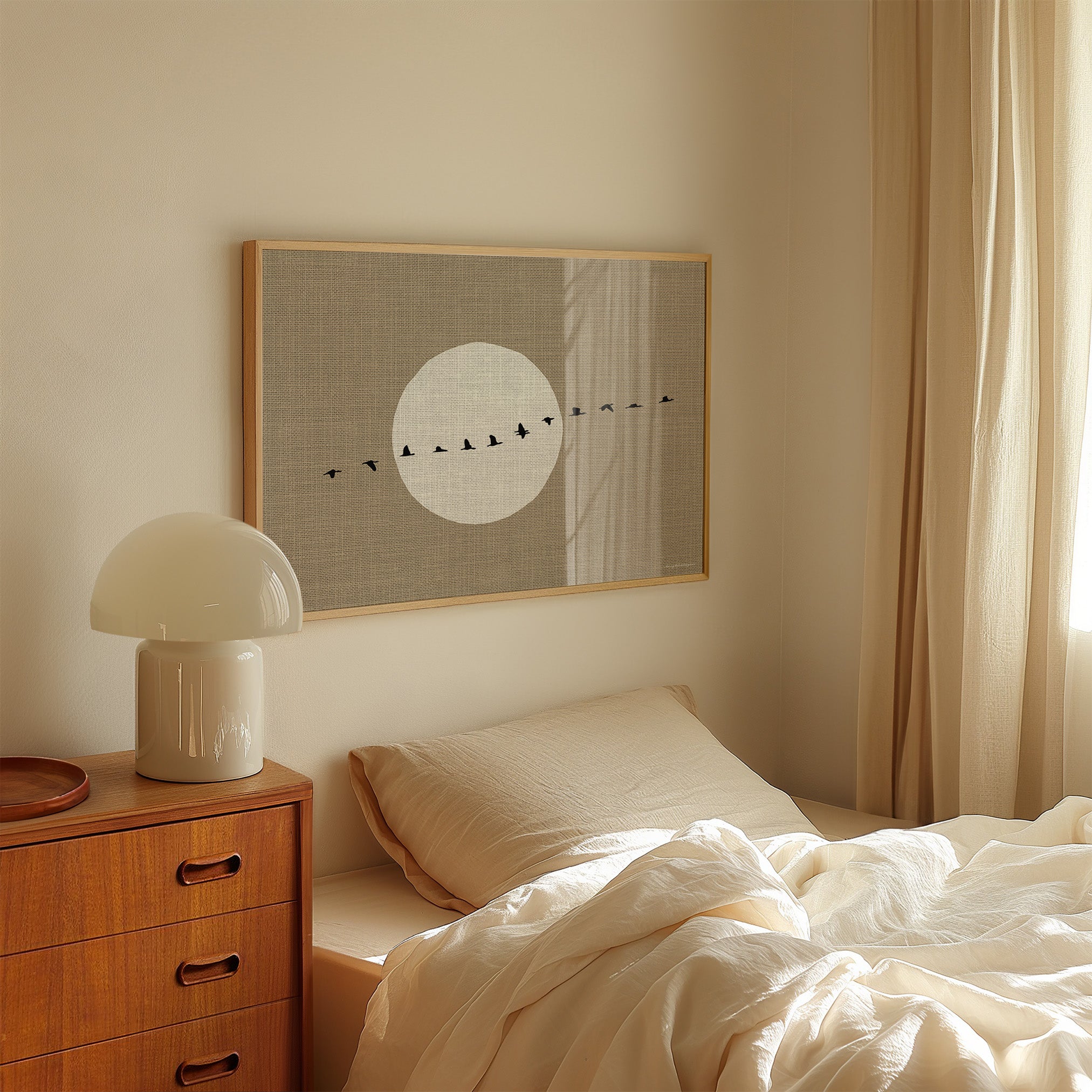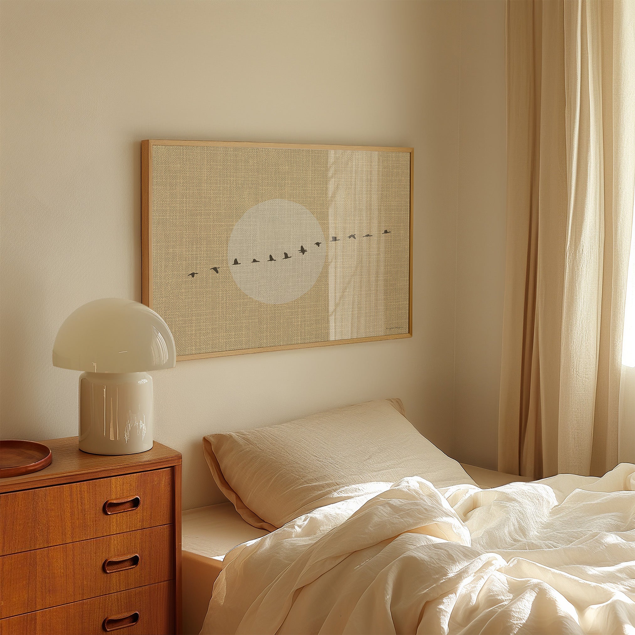 Laat dit magische moment iedere dag opnieuw tot leven komen in jouw Japandi of Scandinavische interieur. Of het nu voor de woonkamer, slaapkamer of kantoor is, deze poster in linnen look voegt iets bijzonders toe aan elke muur.