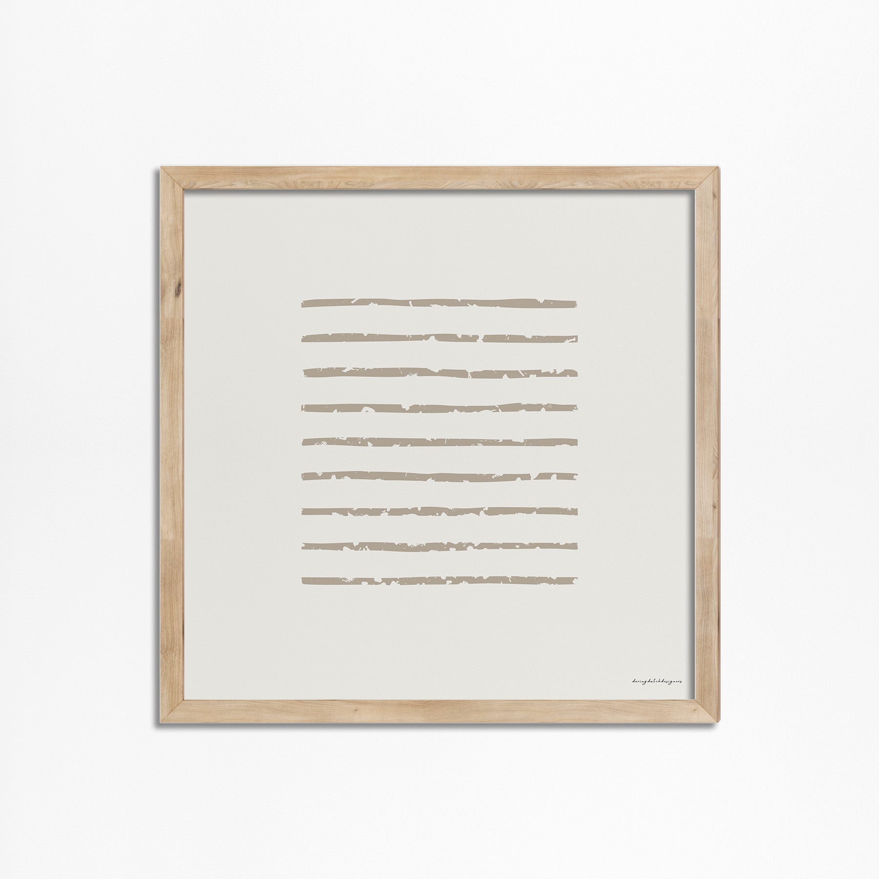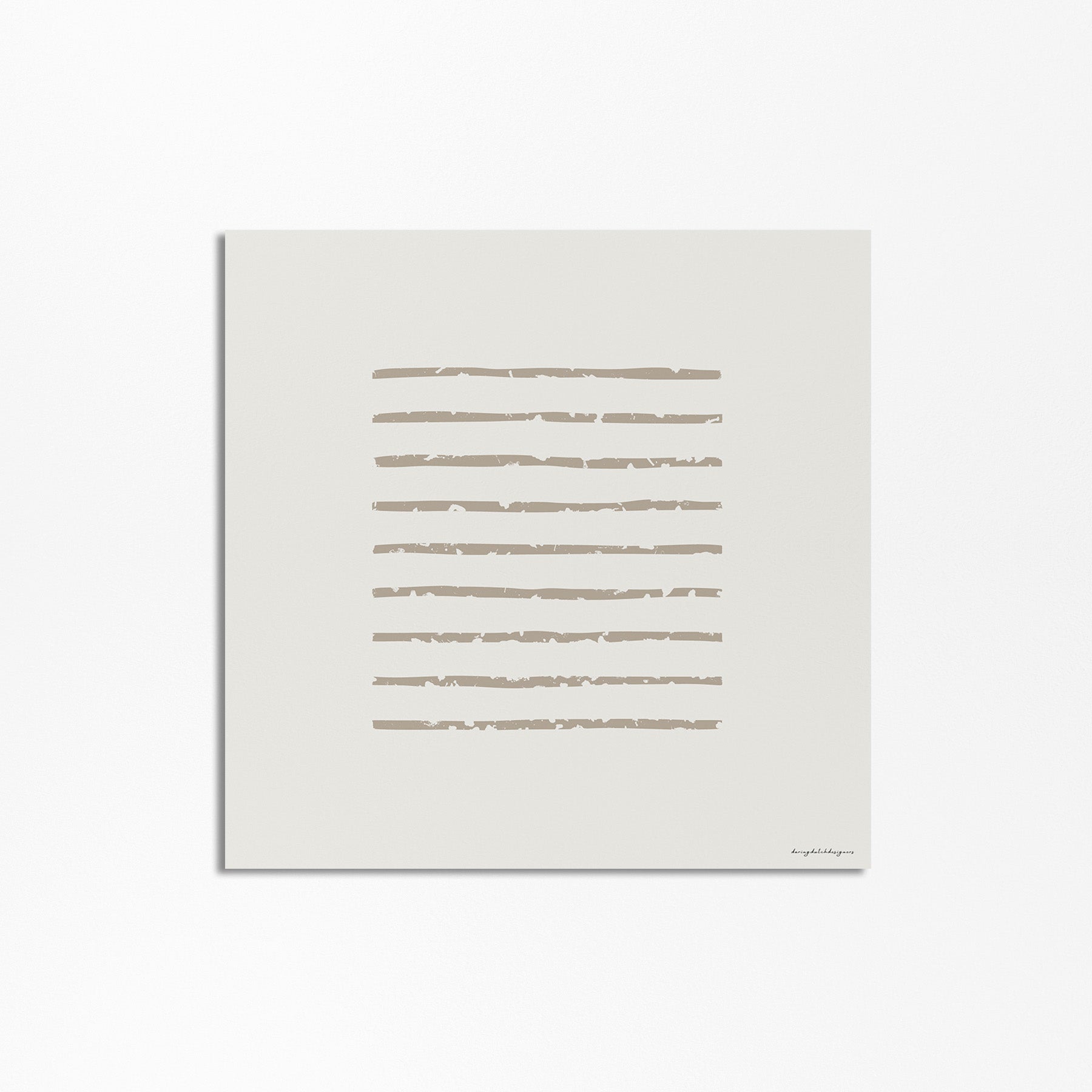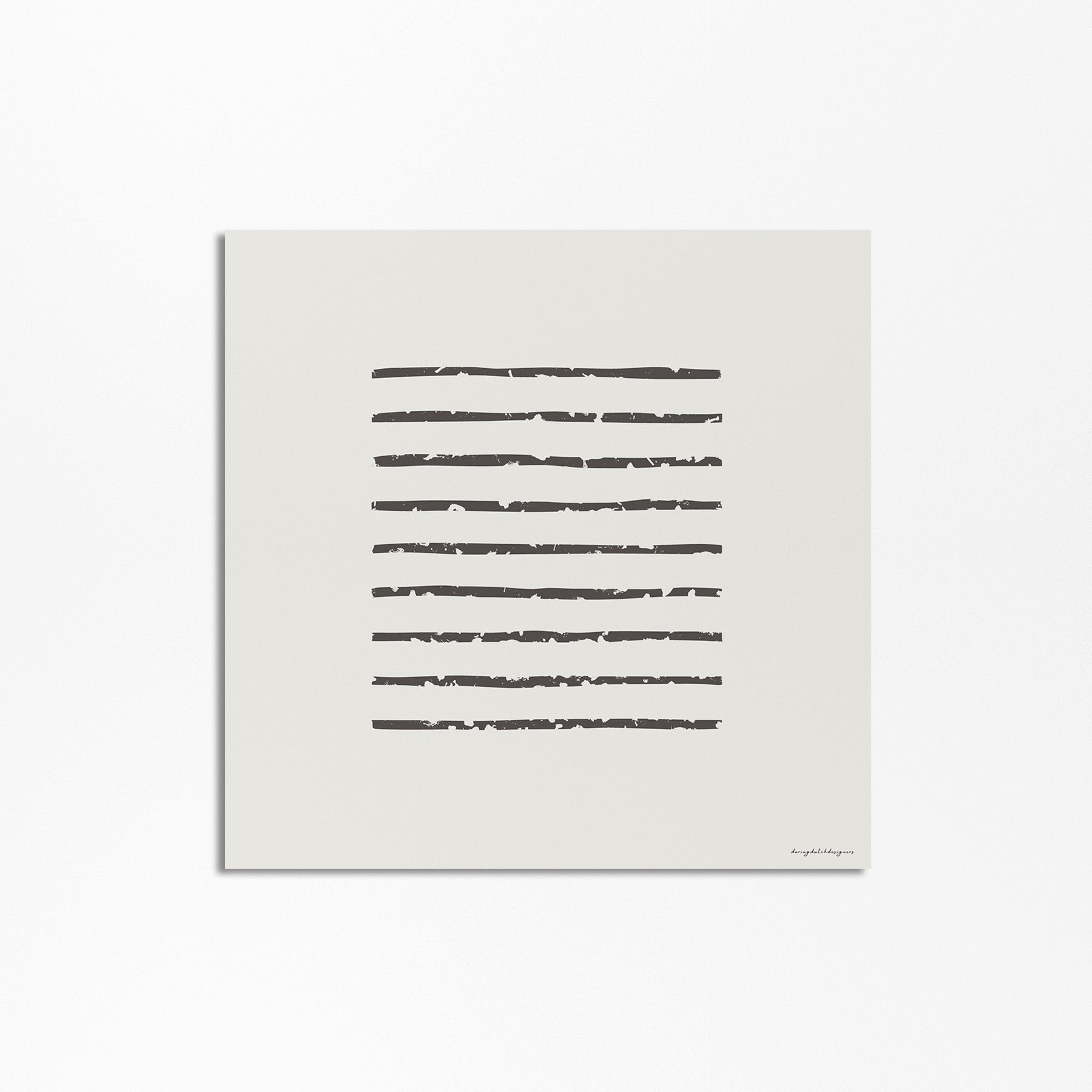 Verlang je naar een plek om te ontsnappen aan de drukte van alledag? Deze vierkante poster biedt een moment van pure ontspanning. Negen horizontale imperfecte lijnen vormen een subtiel spel van orde en rust. Samen een uitnodiging tot ontspanning en te genieten van de eenvoud van het moment.