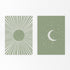 Laat de Zon en Maan Tweeluik Poster je herinneren aan de schoonheid van de natuur en de magie van de nacht. Geef jouw boho-interieur een boost of hang ze op in de kinderkamer of babykamer en creëer een inspirerende omgeving waar je kleintjes kunnen dromen van verre sterrenstelsels en zonnige avonturen.